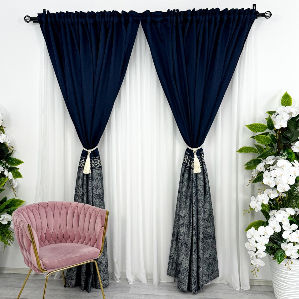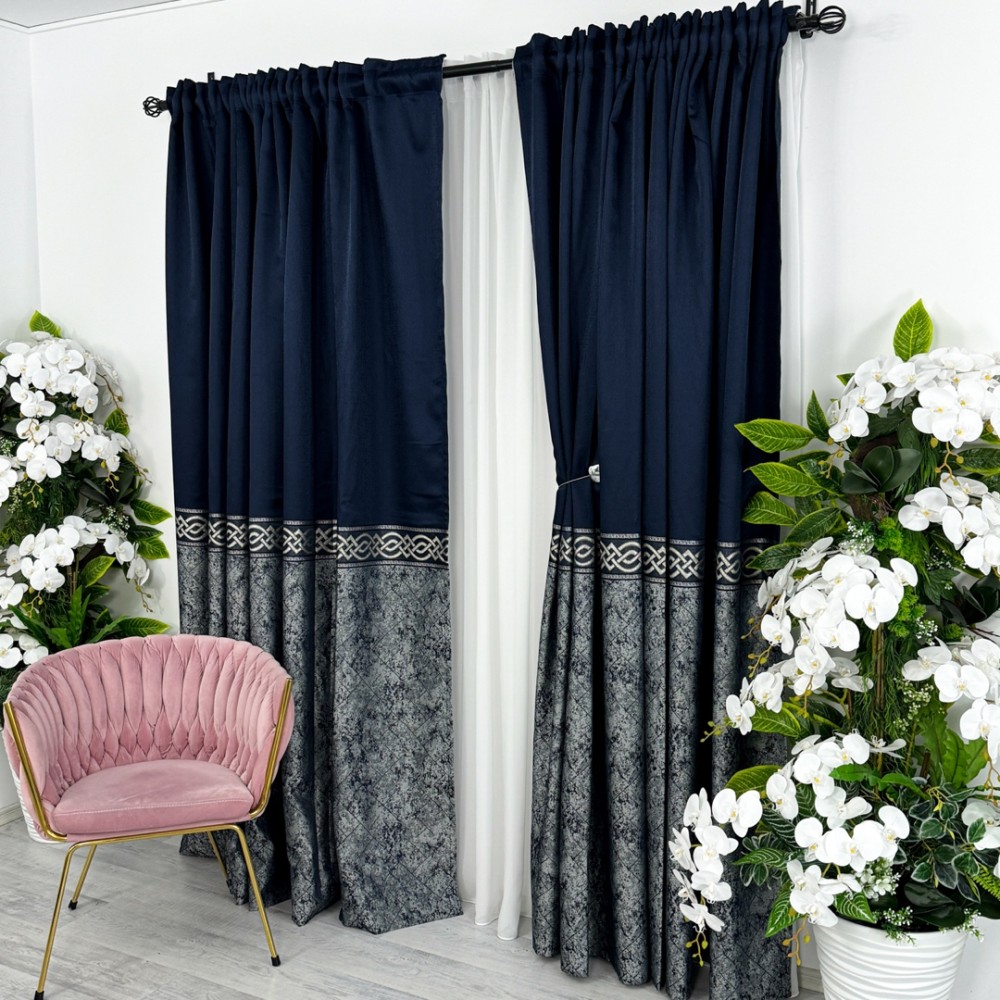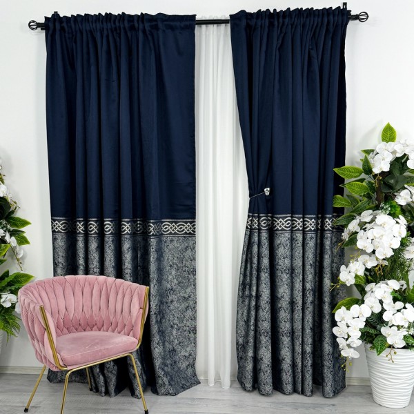 Set 2 Draperii Royal, tip panou, 300cm x 232cm , Rejansa pt. bara , Bleumarin cu Gri, CumparaMisim, cod produs: CSR-DRs25A