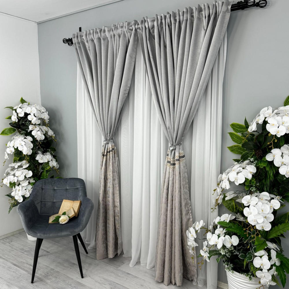 Aceste draperii nu sunt doar un element de decor, ci și o declarație a bunului gust și a stilului sofisticat al proprietarului. Cu o astfel de alegere, încăperea devine cu adevărat remarcabilă, transformând orice spațiu într-un sanctuar al luxului și al eleganței.