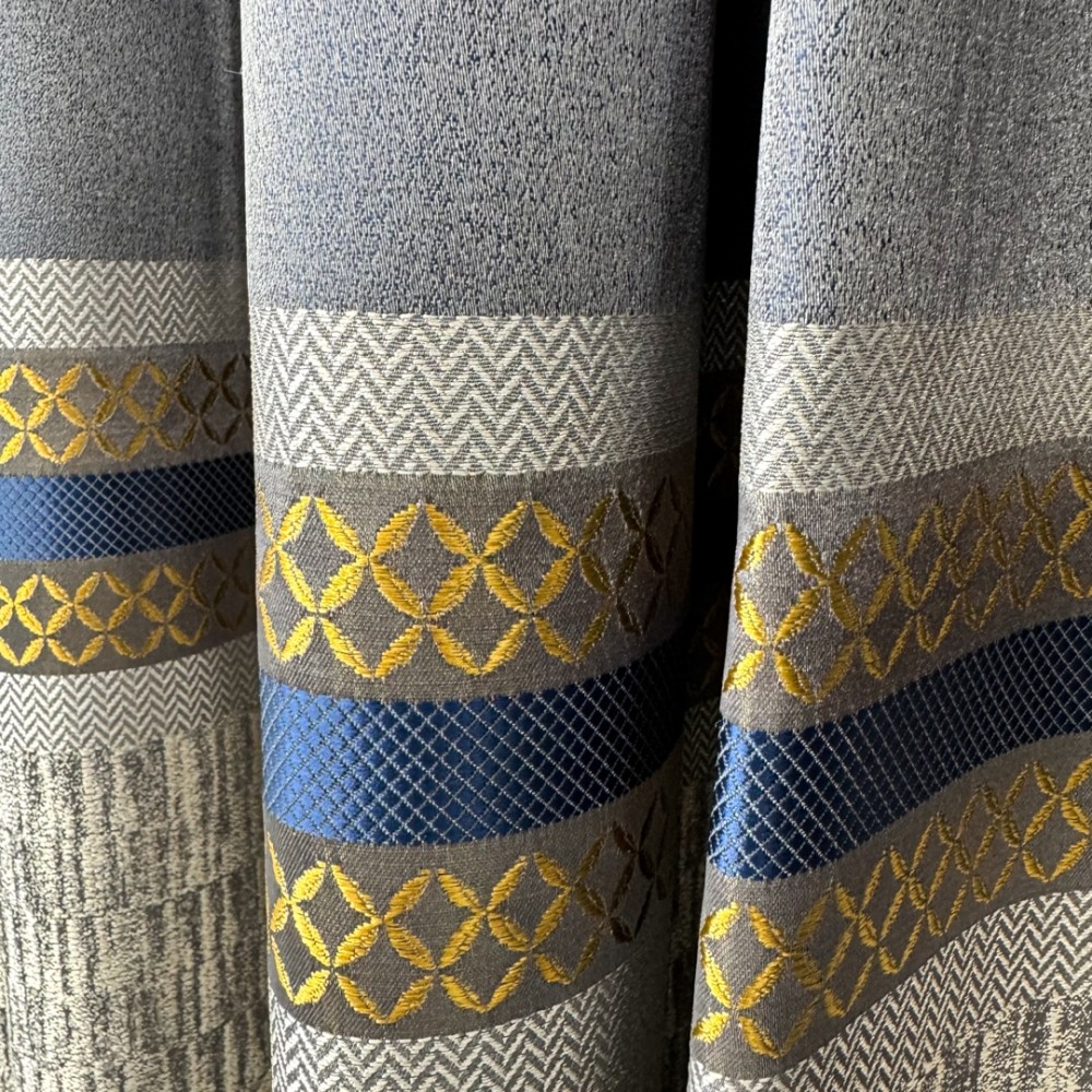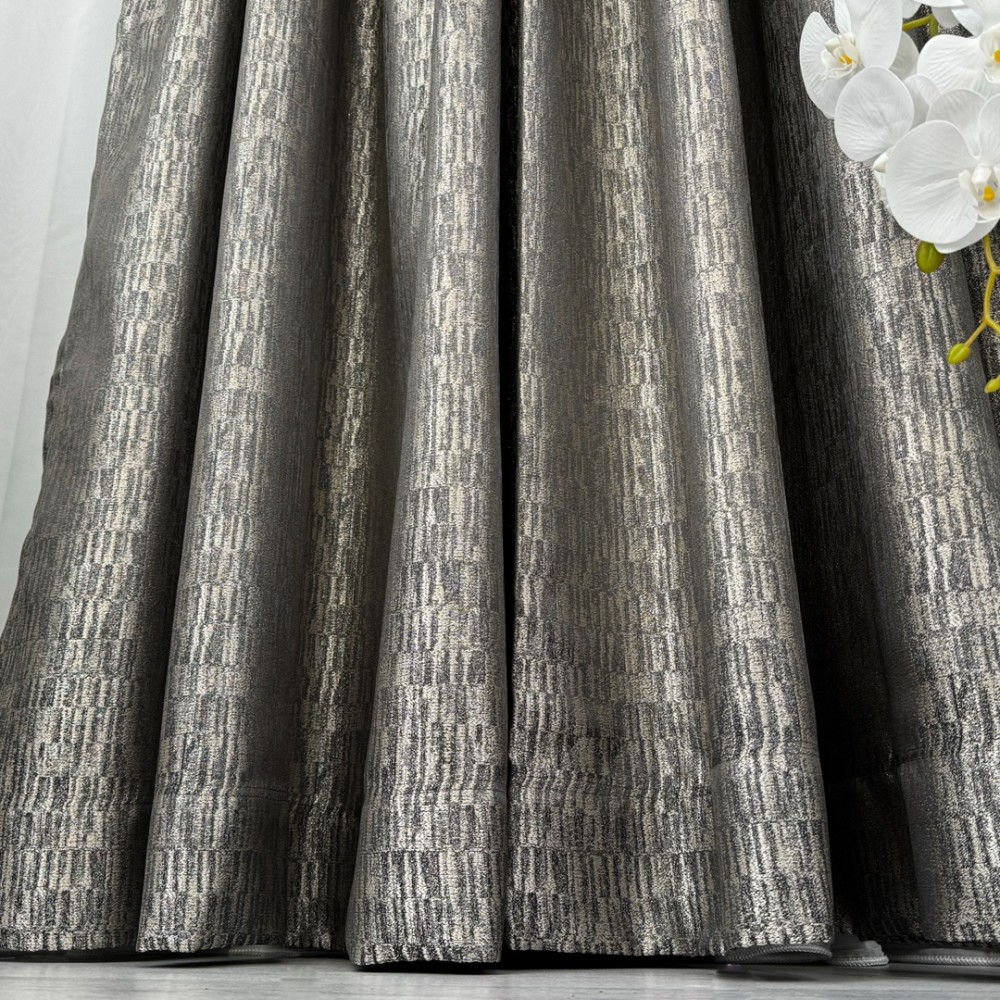 Ceea ce face draperiile cu adevărat remarcabile sunt detaliile aurii. Aceste insertii metalizate adaugă un element de strălucire și glamour, creând un contrast elegant cu textura mată a materialului. Fie că sunt plasate într-un living, într-un dormitor sau într-o sală de mese, draperiile cu insertii aurii atrag atenția și conferă o notă de opulență.