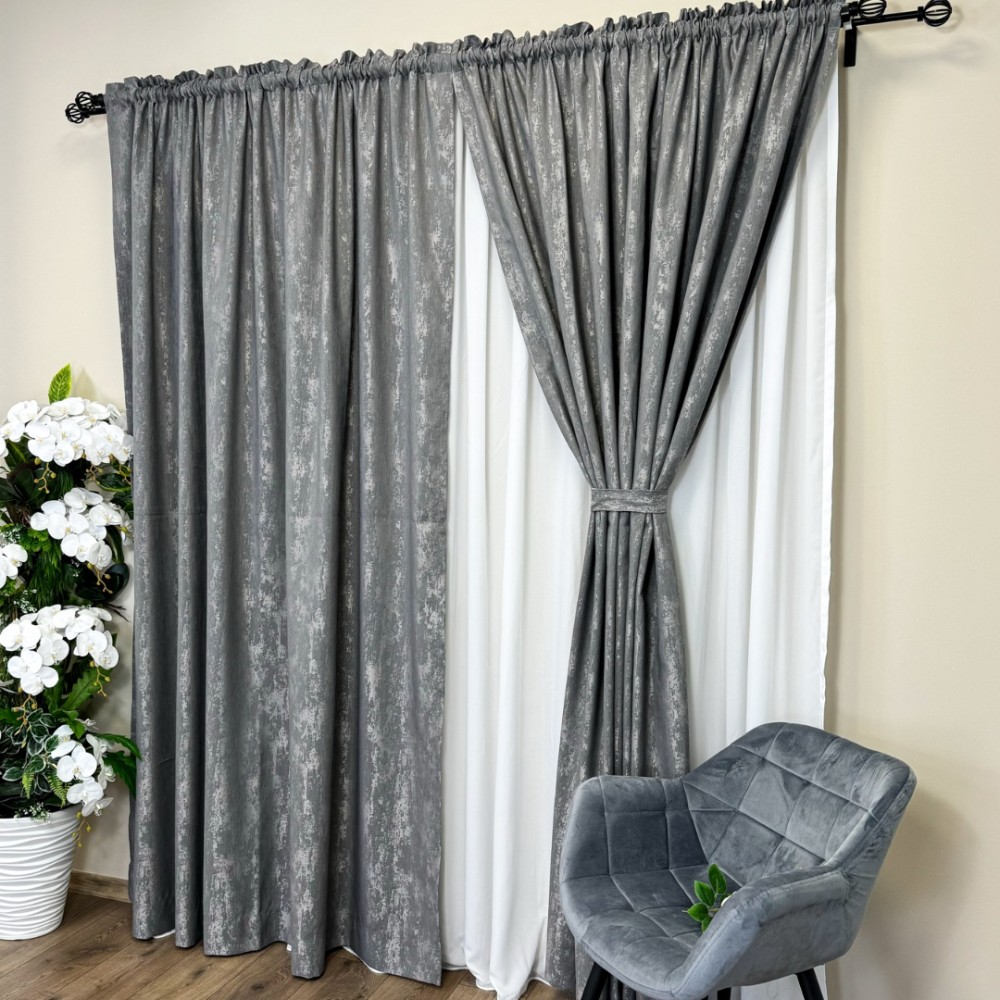 Set 2 Draperii VENTI V1 din Jacquard model Nisip - 200cm x 240cm, Tiv lat, GRI INCHIS, CumparaMisim, cod produs: CRVs-112A