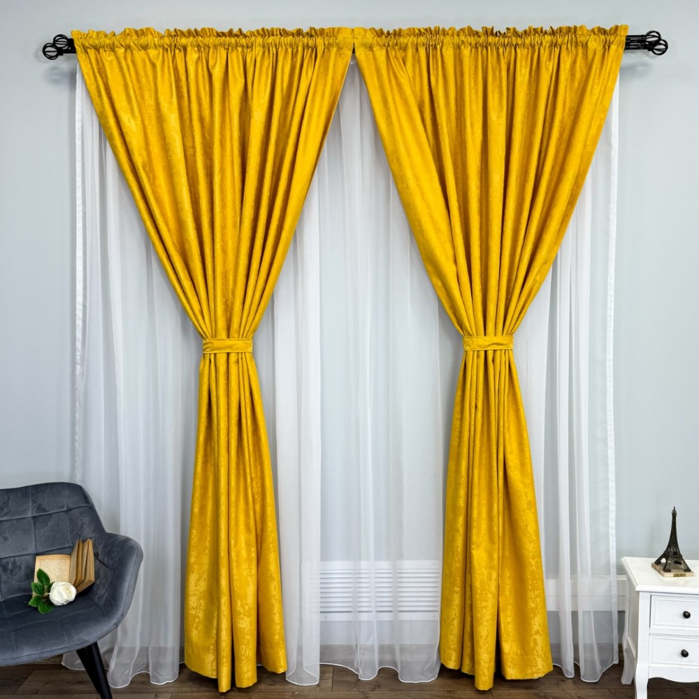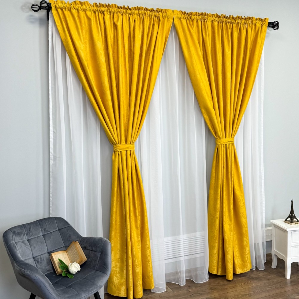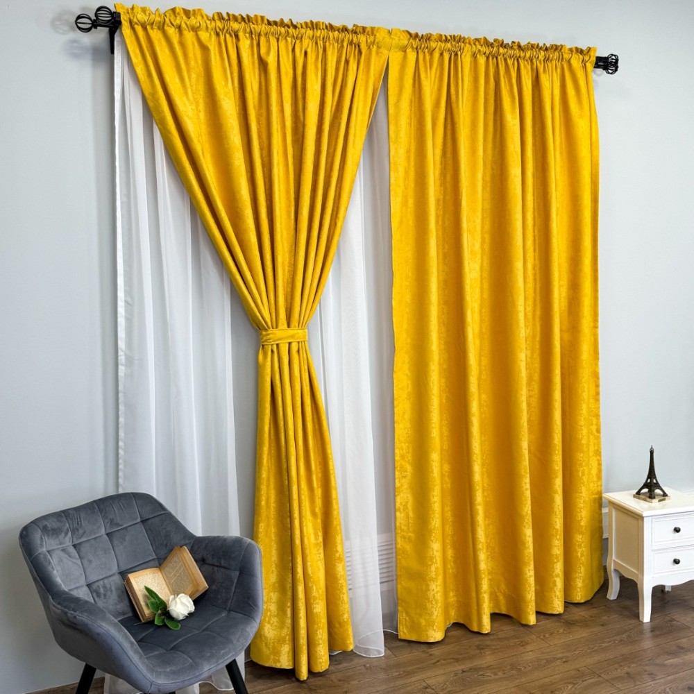 Set 2 Draperii VENTI V1 din Jacquard model Nisip - 200cm x 240cm, Tiv lat ,GALBEN, CumparaMisim, cod produs: CRVs-106A