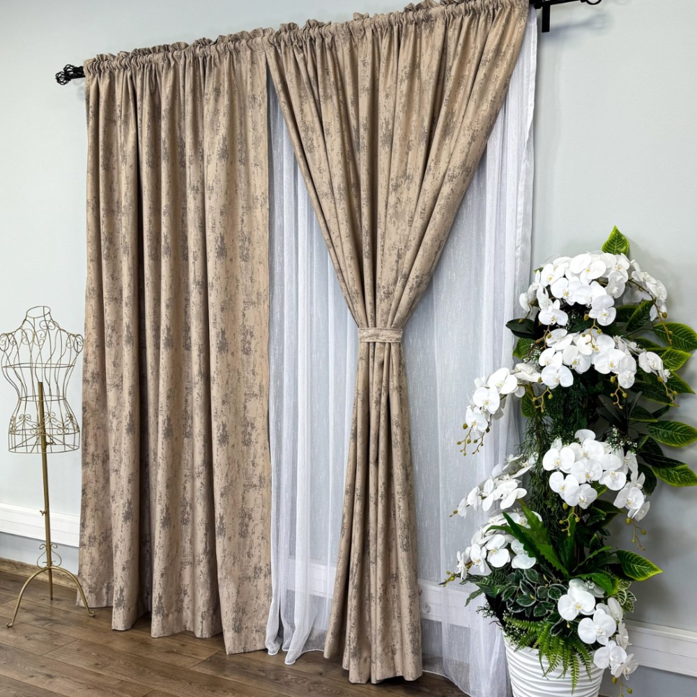 Draperiile noastre din jacquard cu opacitate medie spre ridicată, sunt creații unice, realizate cu mândrie în atelierul nostru. Fiecare pereche de draperii este croită pe măsură, pentru a se potrivi perfect dimensiunilor specificate de client.