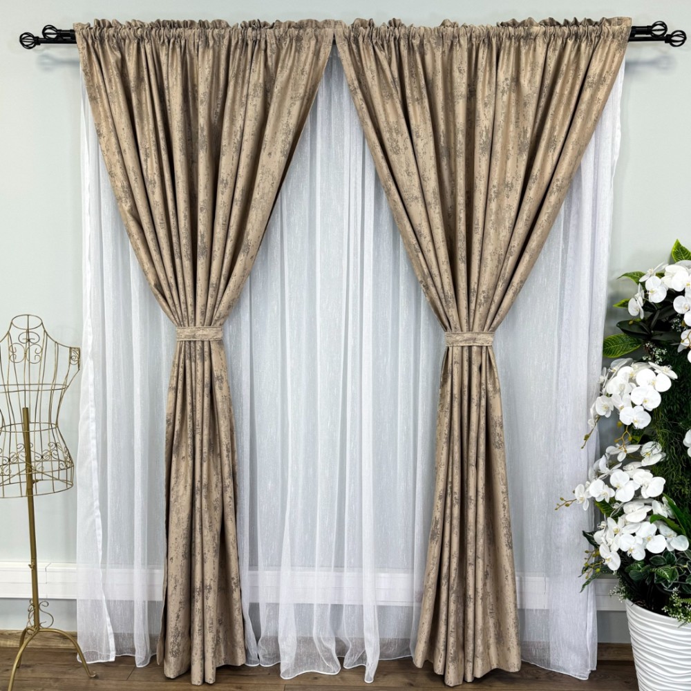 Set 2 Draperii VENTI V1 din Jacquard model Nisip -200cm x 240cm,Tiv lat, BEJ, CumparaMisim, cod produs: CRVs-116A
