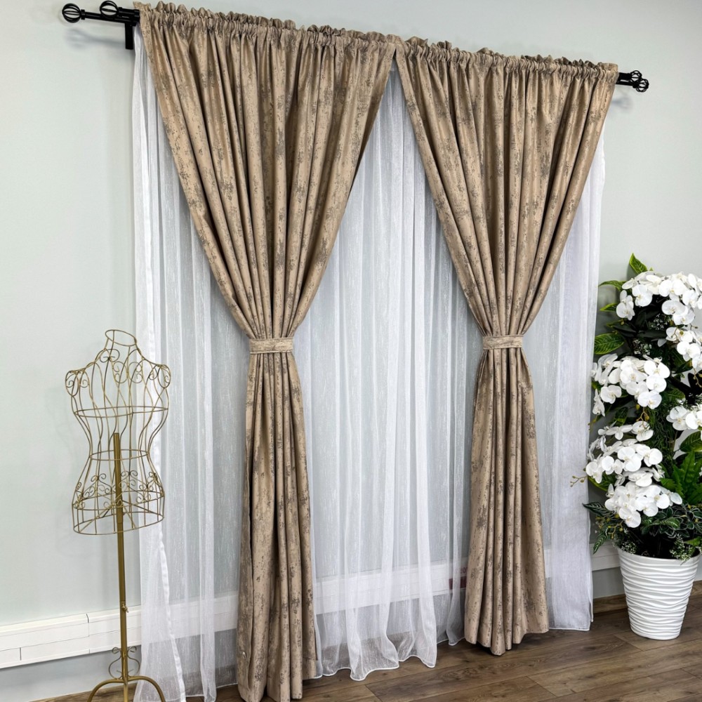 În concluzie, draperiile noastre din jacquard cu opacitate medie, croite în atelierul nostru pe dimensiunile clientului, reprezintă alegerea perfectă pentru cei care doresc să aducă eleganță și rafinament în designul interior. Cu atenție la detalii și croire personalizată, ne dedicăm să oferim clienților noștri produse de cea mai înaltă calitate și satisfacție deplină.