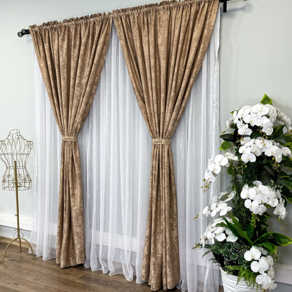 În concluzie, draperiile noastre din jacquard cu opacitate medie, croite în atelierul nostru pe dimensiunile clientului, reprezintă alegerea perfectă pentru cei care doresc să aducă eleganță și rafinament în designul interior. Cu atenție la detalii și croire personalizată, ne dedicăm să oferim clienților noștri produse de cea mai înaltă calitate și satisfacție deplină.