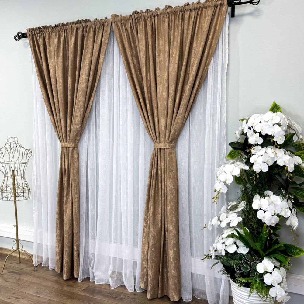 Draperiile noastre din jacquard cu opacitate medie spre ridicată, sunt creații unice, realizate cu mândrie în atelierul nostru. Fiecare pereche de draperii este croită pe măsură, pentru a se potrivi perfect dimensiunilor specificate de client.