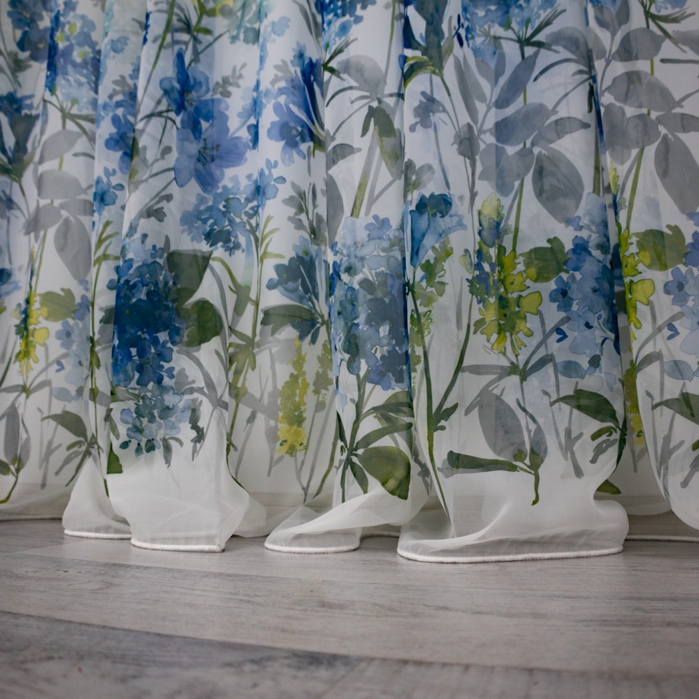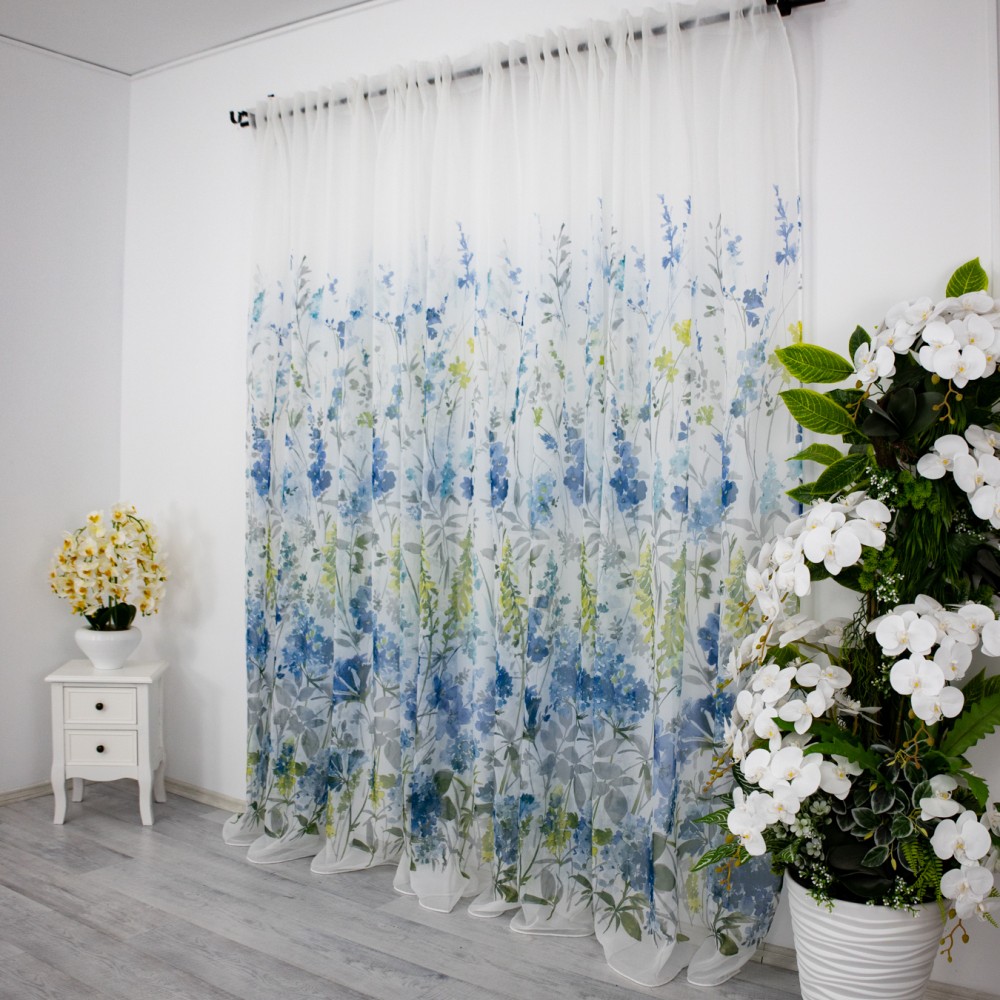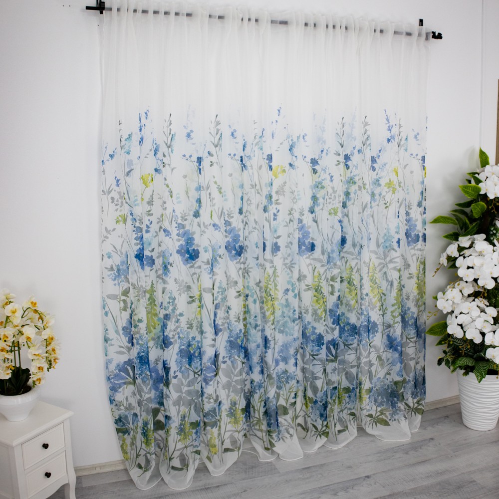 Set 2 Perdele din matase imprimata - 200cm latime x 210cm, Rejansa pt. sina, flori albastre , CumparaMisim, cod produs: BPDs13B