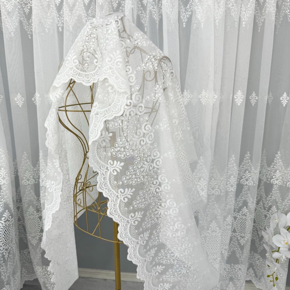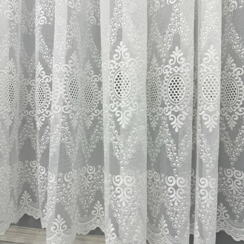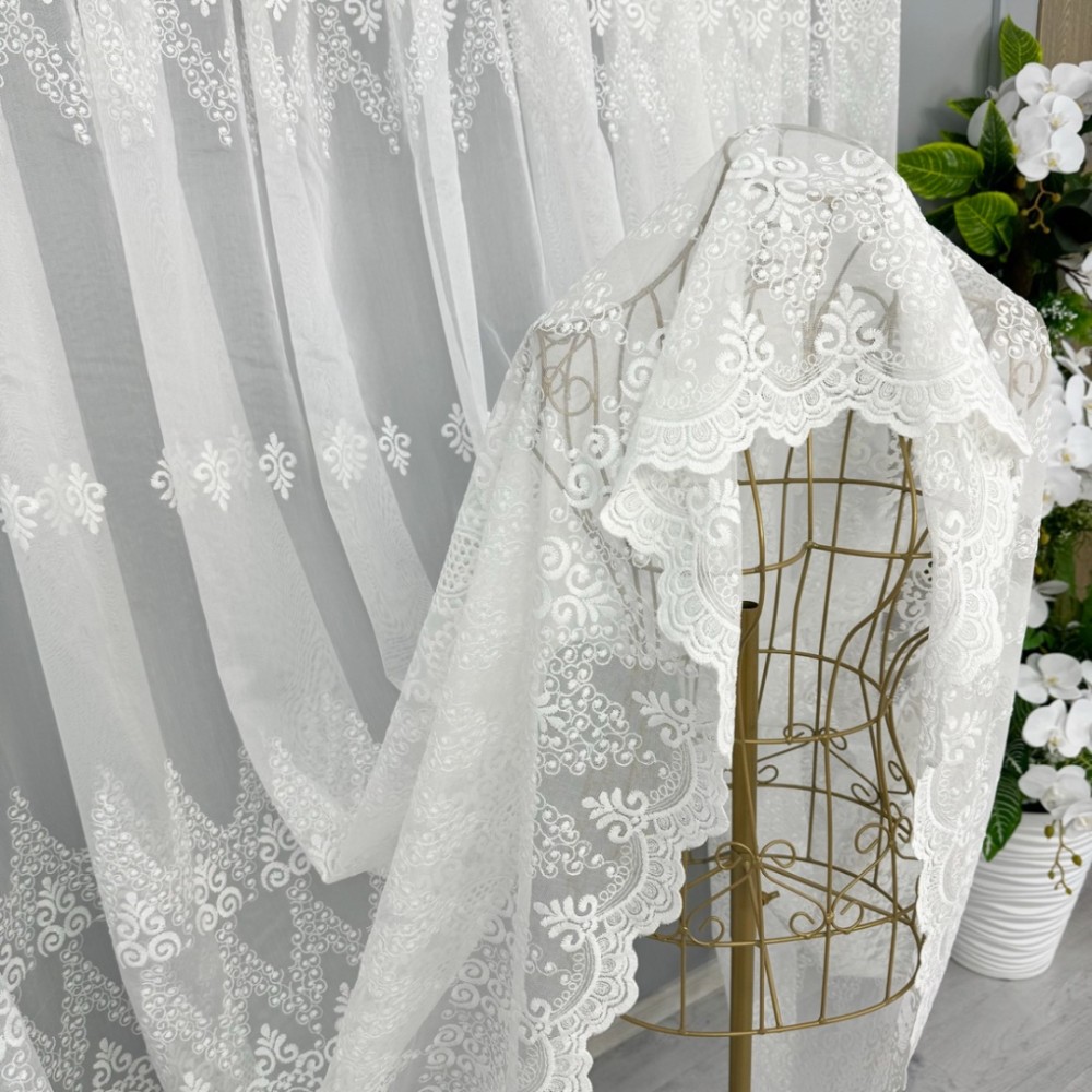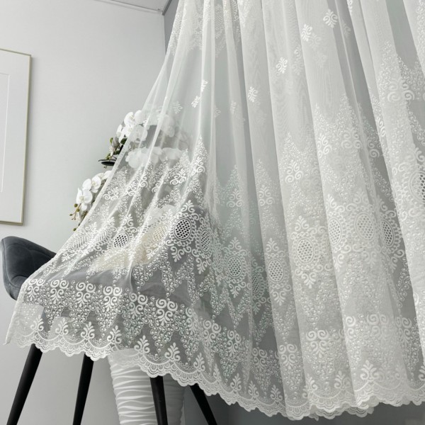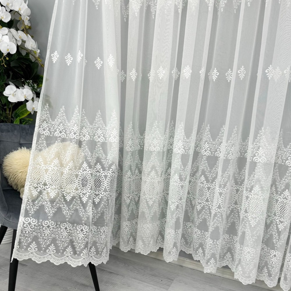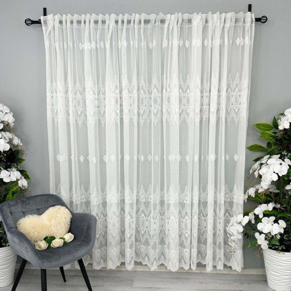 Set 2 Perdele Gina din IN Brodat, Alb, 600cm latime x 260cm inaltime, cu rejansa pentru sina, CumparaMisim, cod produs: CSR-PDs39B