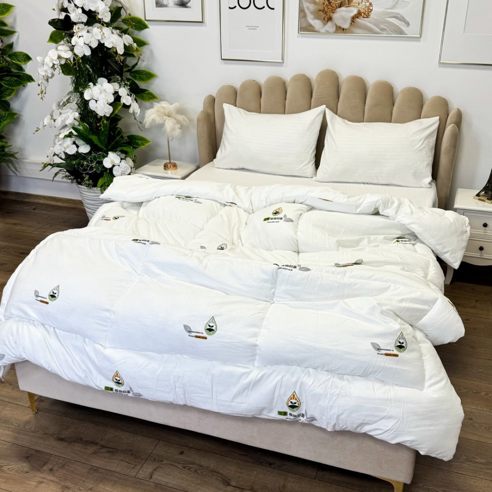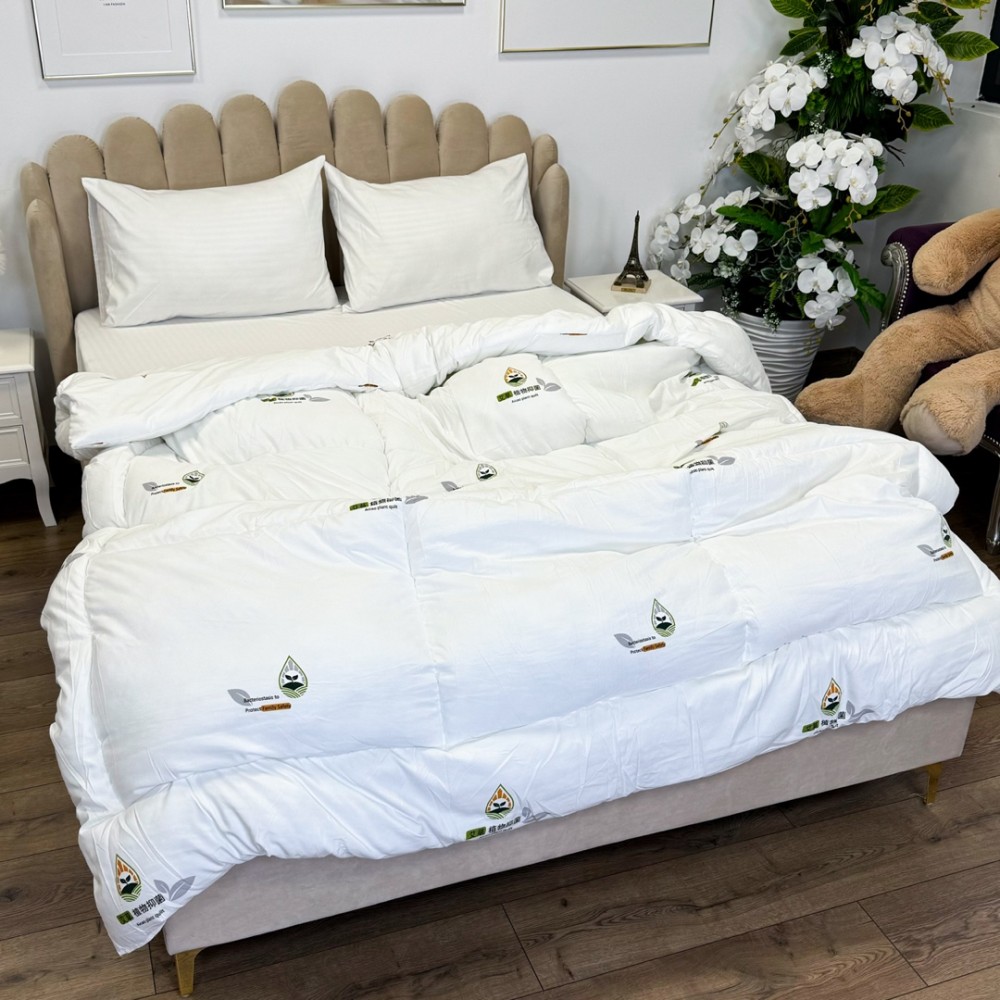 3. Umplutură premium: Fiecare pilota este umplută cu puf siliconic de înaltă calitate, cu o greutate de 400g pe metru pătrat. Această umplutură oferă o izolație termică excelentă și o senzație plină și moale, pentru a vă asigura un somn odihnitor și confortabil.