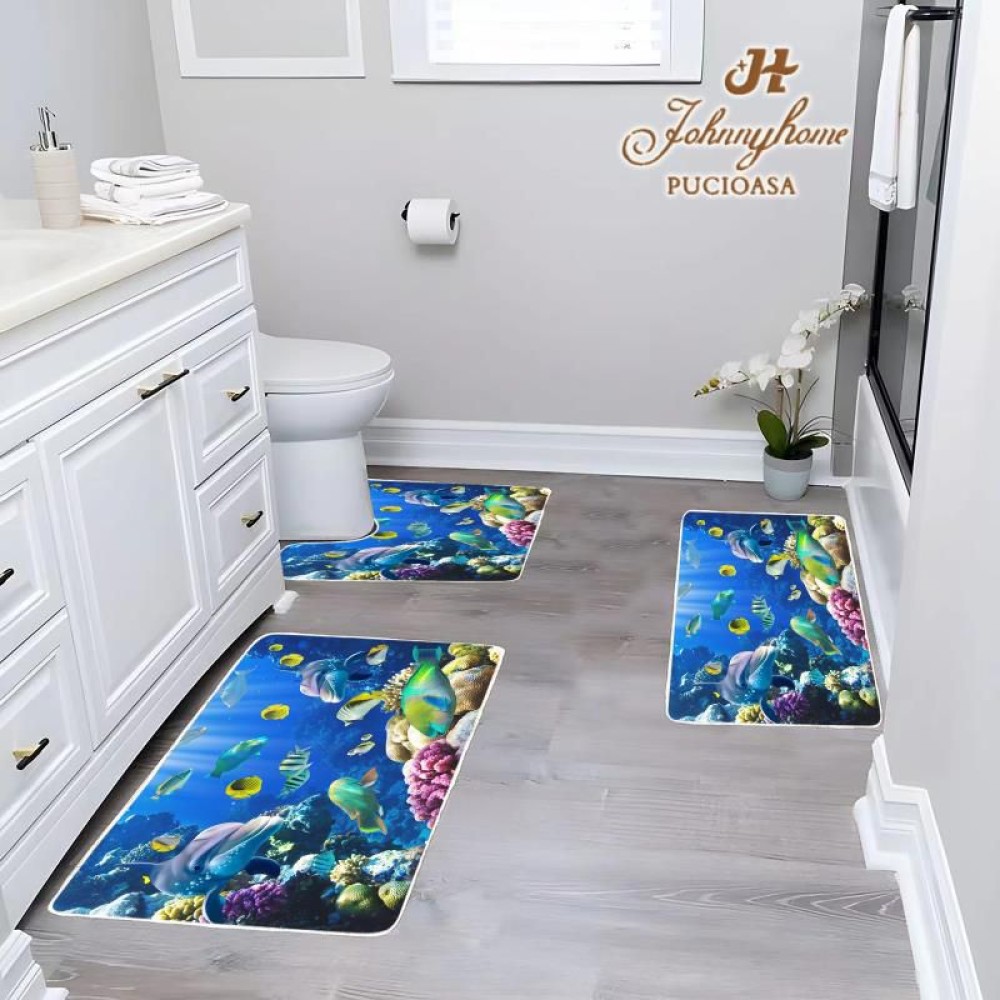 Set 3 covoare pentru Baie, Albastru, pesti, delfini, Johny Home Pucioasa, cod produs: SPR-W-06