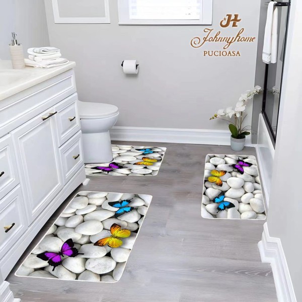 Set 3 covoare pentru Baie, Gri, pietre, fluturi, Johny Home Pucioasa, cod produs: SPR-W-17