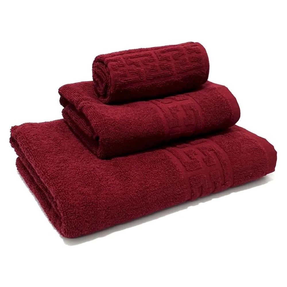 Set 3 Prosoape din 100% Bumbac Pakistanez, 30x50cm, 50x90cm ai 70x130cm, Visiniu, Alti producatori, cod produs: SPB72