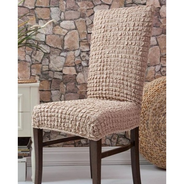 Set 6 huse creponate universale pentru scaun, maro deschis , Casa Sabry, cod produs: SBR-HSC-111