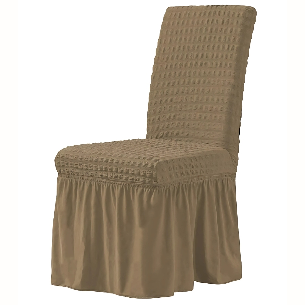 Set 6 Huse Elastice si Creponate Cu Volanase pentru Scaune, maro deschis, Casa Sabry, cod produs: SBR-HSCV-111