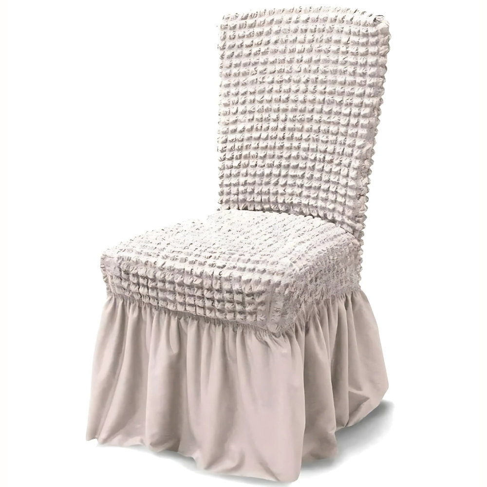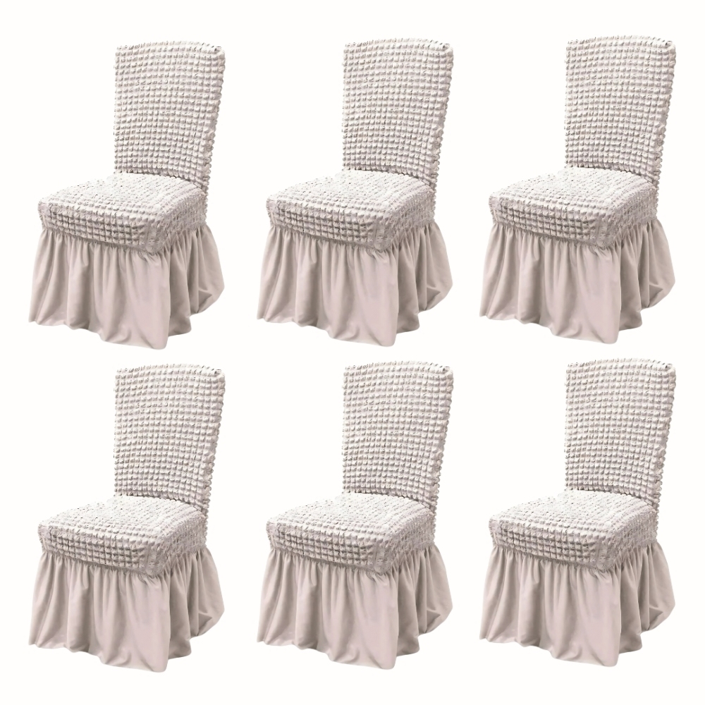 Set 6 Huse Elastice si Creponate Cu Volanase pentru Scaune, nude, Casa Sabry, cod produs: SBR-HSCV-101