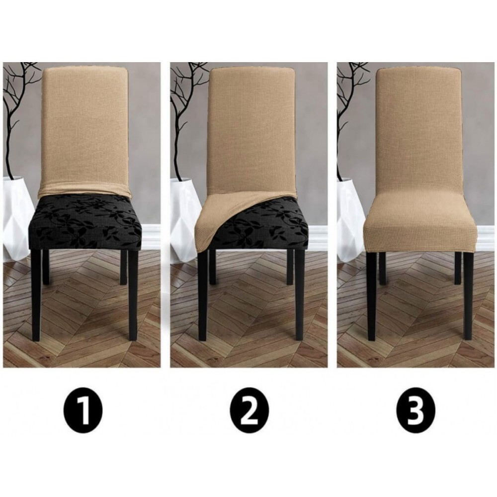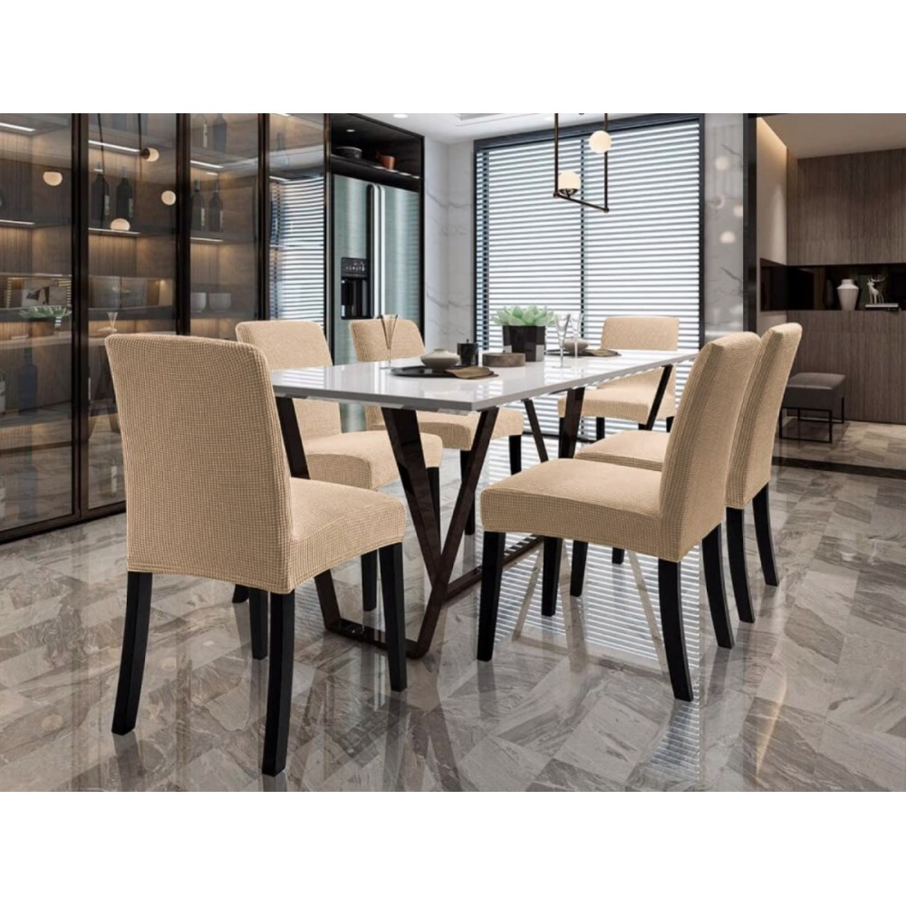 Set 6 huse universale pentru scaun model embosat tip cocolino Bej Inchis, Casa Sabry, cod produs: SHS12072