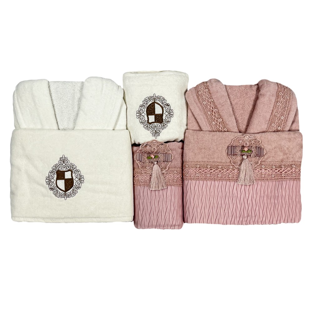 Set baie Lux Family Bumbac, Broderie si Dantela Crem-Pudra, Alti producatori, cod produs: SBR112