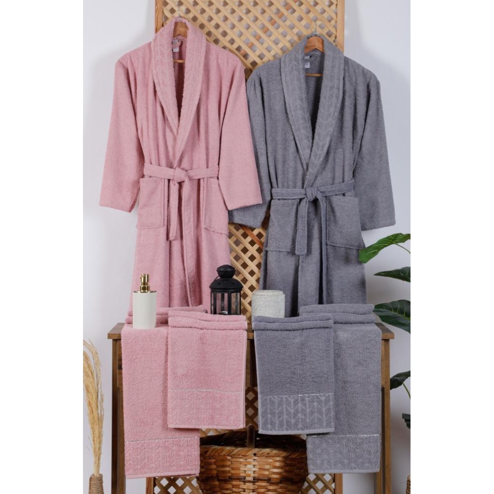 Set baie Lux Family Bumbac, cu Broderie, 6 PIESE, Roz-Gri, Alti producatori, cod produs: SBR122