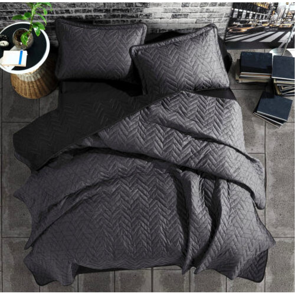 Set cuvertura de pat dublu, 3 piese, Bumbac 100%, 240x260cm, Clasy, MONZA V1 Antracit, Ralex Pucioasa, cod produs: RXC106