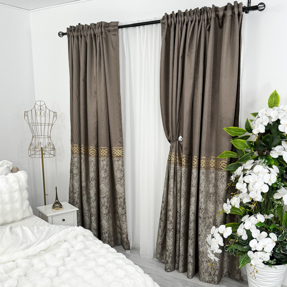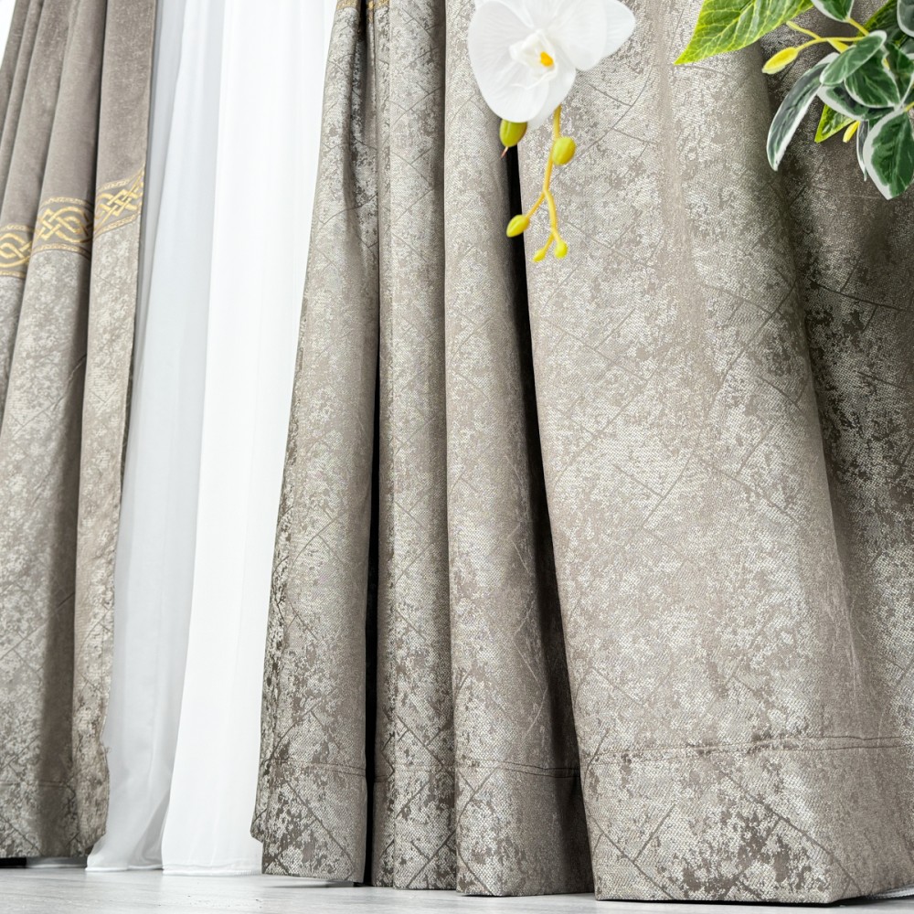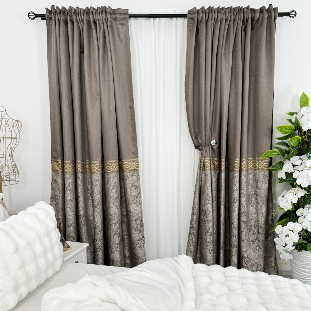 Ceea ce face draperiile cu adevărat remarcabile sunt detaliile aurii. Aceste insertii metalizate adaugă un element de strălucire și glamour, creând un contrast elegant cu textura mată a materialului. Fie că sunt plasate într-un living, într-un dormitor sau într-o sală de mese, draperiile cu insertii aurii atrag atenția și conferă o notă de opulență.