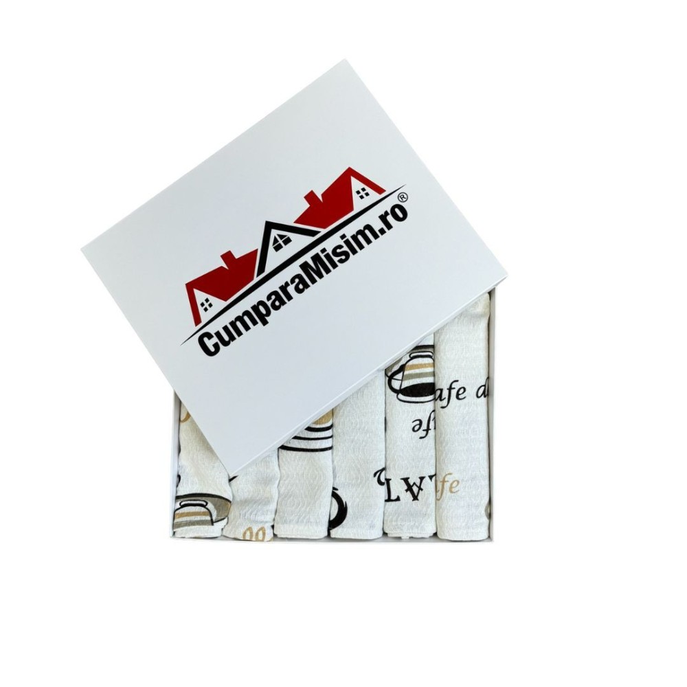 Set de 6 Prosoape Waffle, 30x50cm, pentru Bucatarie, Bumbac 100% Gofre, Atelier CumparaMisim, Crem, Alb, Cafea, cod produs: CMP-B12