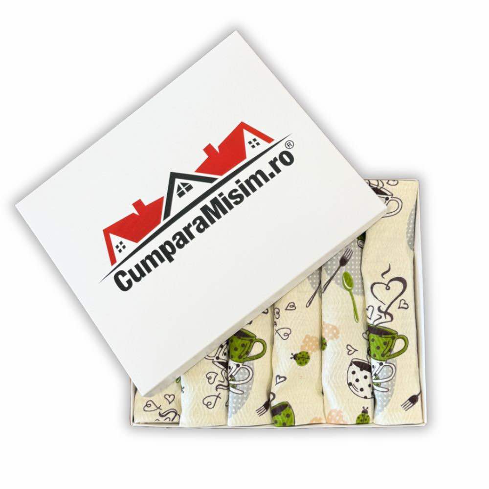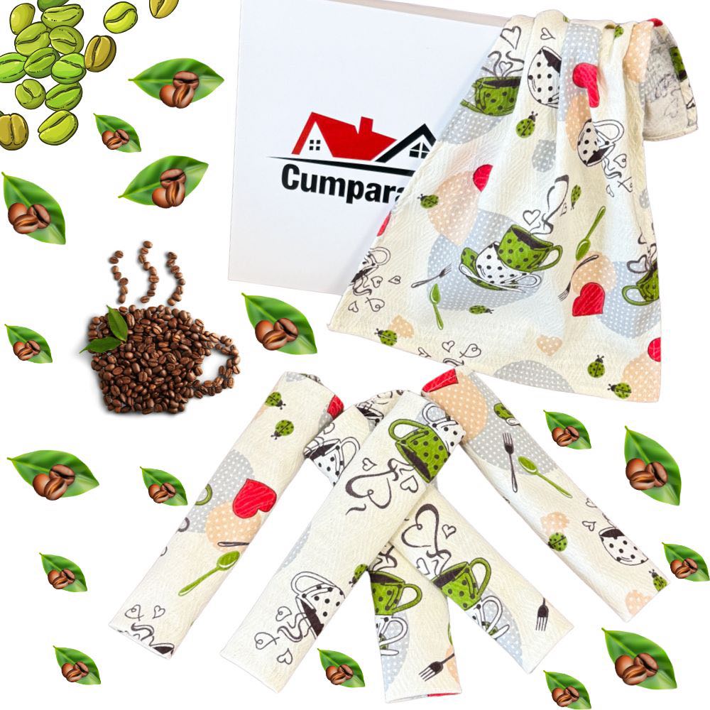 Set de 6 Prosoape Waffle, 30x50cm, pentru Bucatarie, Bumbac 100% Gofre, Atelier CumparaMisim, Crem, Verde, Cafea, cod produs: CMP-B06