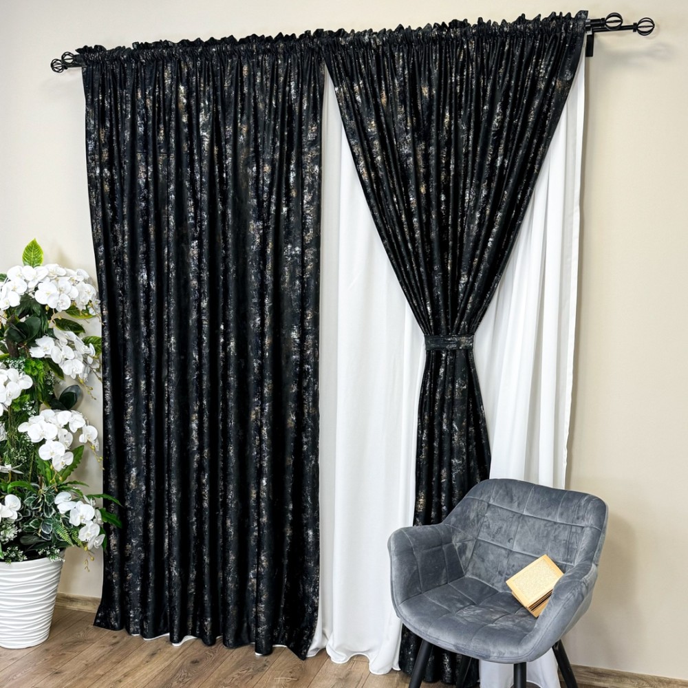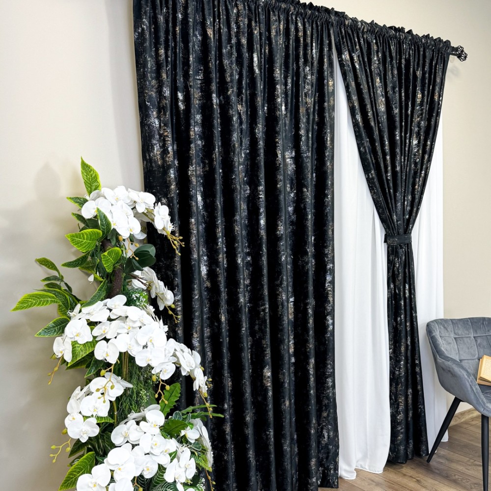 Aceste draperii nu sunt doar un element de decor, ci și o declarație a bunului gust și a stilului sofisticat al proprietarului. Cu o astfel de alegere, încăperea devine cu adevărat remarcabilă, transformând orice spațiu într-un sanctuar al luxului și al eleganței.