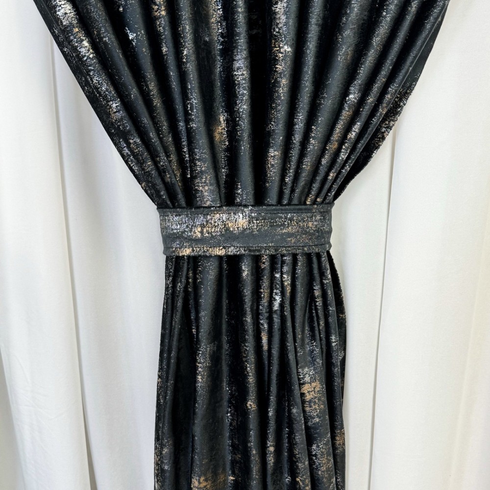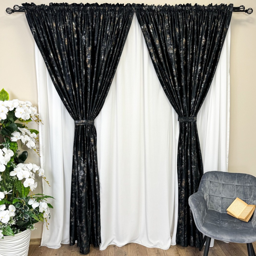 Set Draperii Catifea Asama cu insertii aurii -200cm x 250cm ,Tiv lat , Negru - V16, CumparaMisim, cod produs: CRDs25A