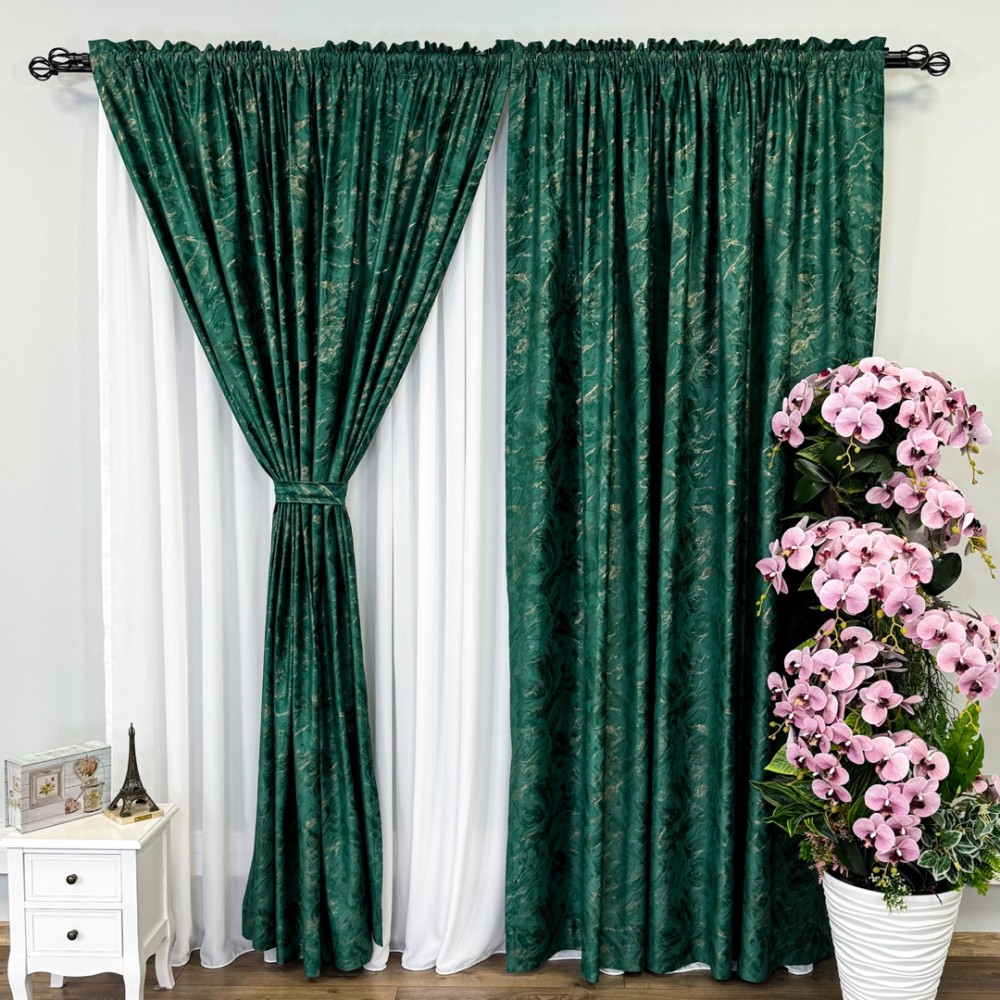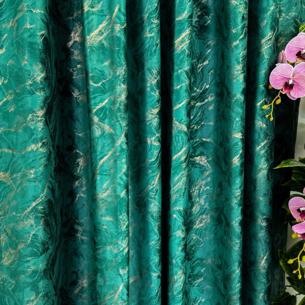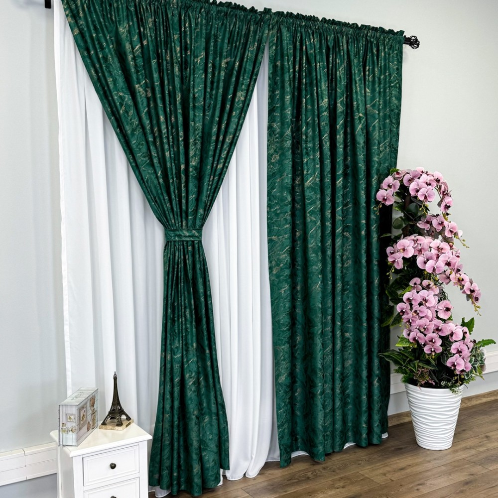Set Draperii Catifea MYKONOS cu valuri rafinate aurii -200cm x 250cm , Tiv lat ,Verde Smarald - V7, CumparaMisim, cod produs: BDRs58A