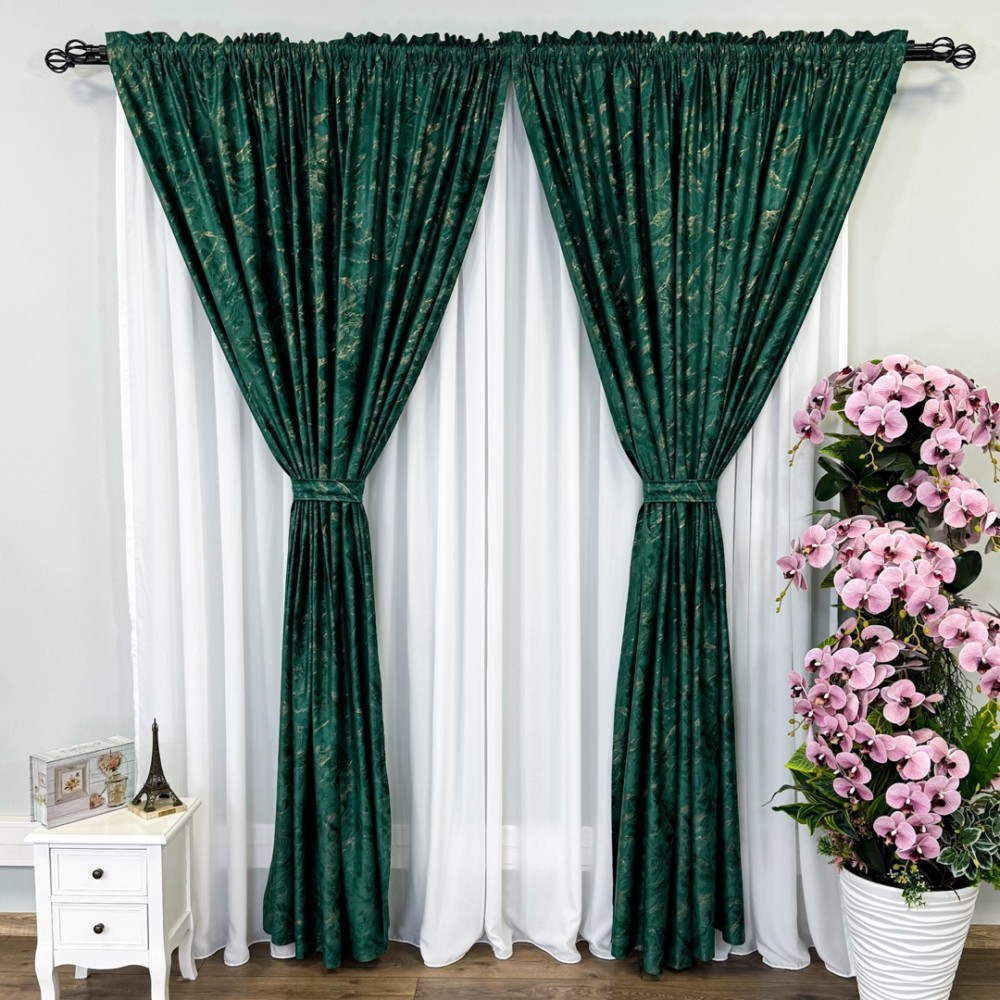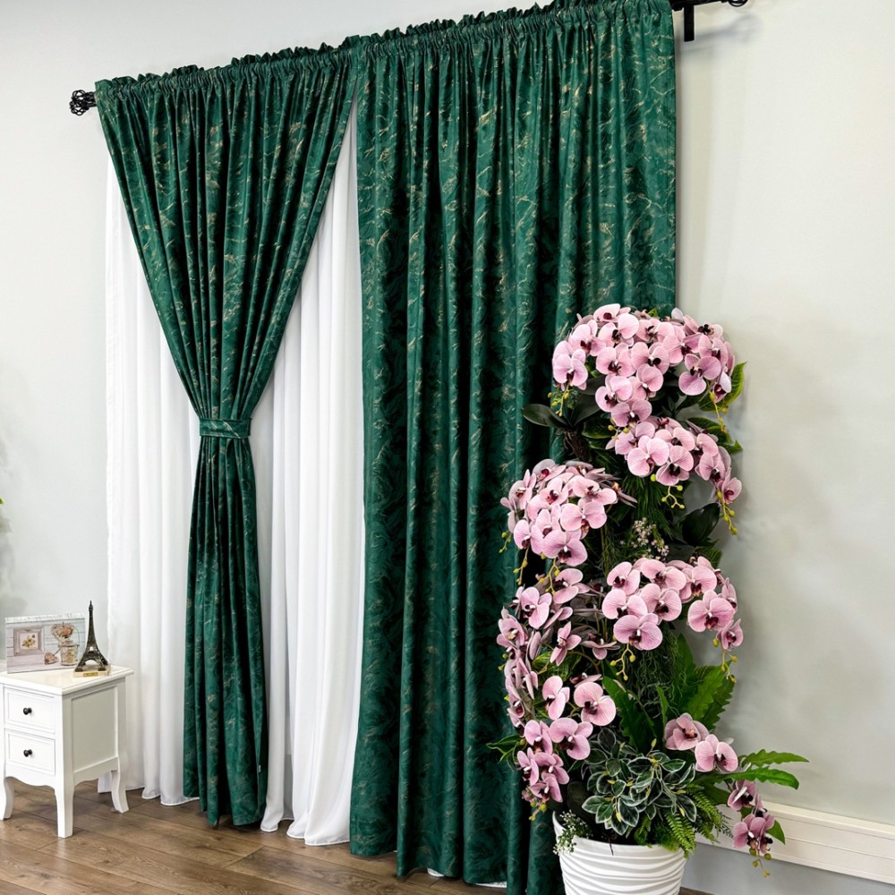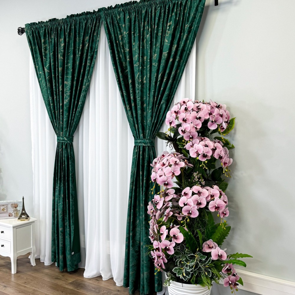Aceste draperii nu sunt doar un element de decor, ci și o declarație a bunului gust și a stilului sofisticat al proprietarului. Cu o astfel de alegere, încăperea devine cu adevărat remarcabilă, transformând orice spațiu într-un sanctuar al luxului și al eleganței.