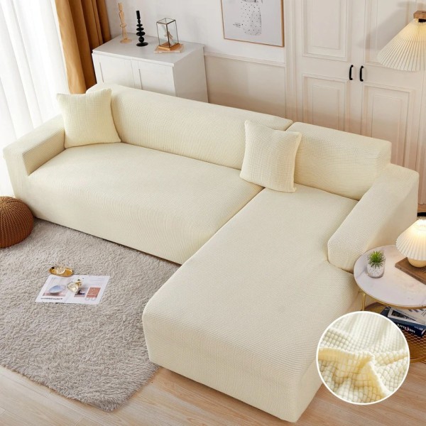 Set husa elastica model embosat tip cocolino pentru coltar, Crem, Casa Sabry, cod produs: HCL1085