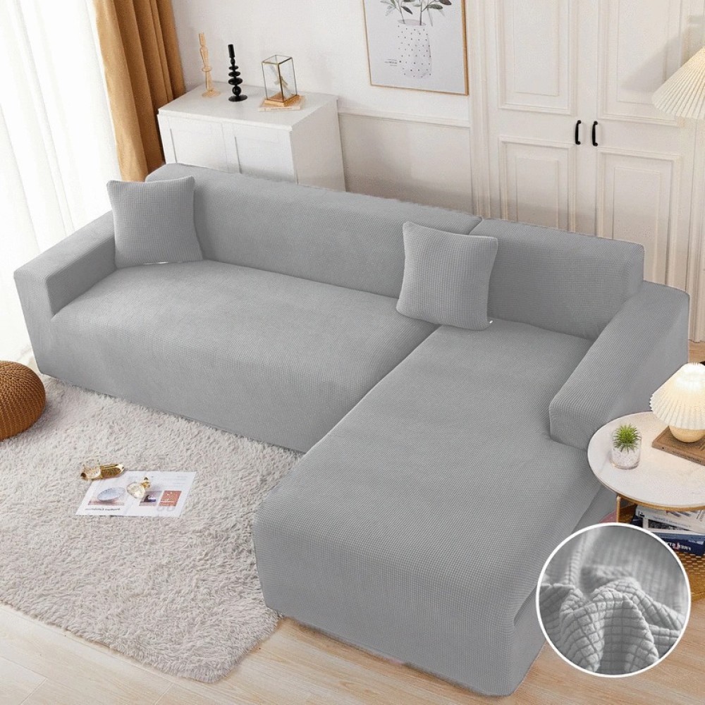 Set husa elastica model embosat tip cocolino pentru coltar, Gri deschis, Casa Sabry, cod produs: HCL11009