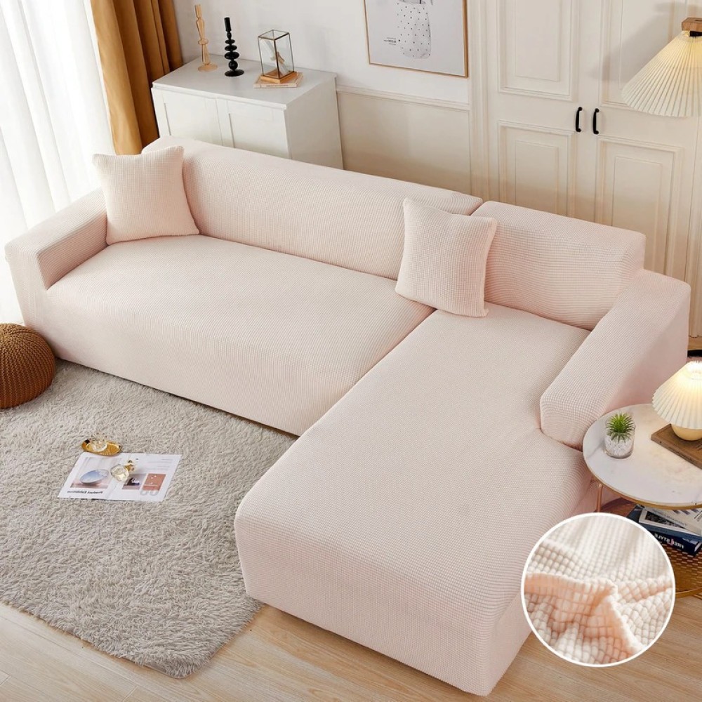 Set husa elastica model embosat tip cocolino pentru coltar, Natural, Casa Sabry, cod produs: HCL1070