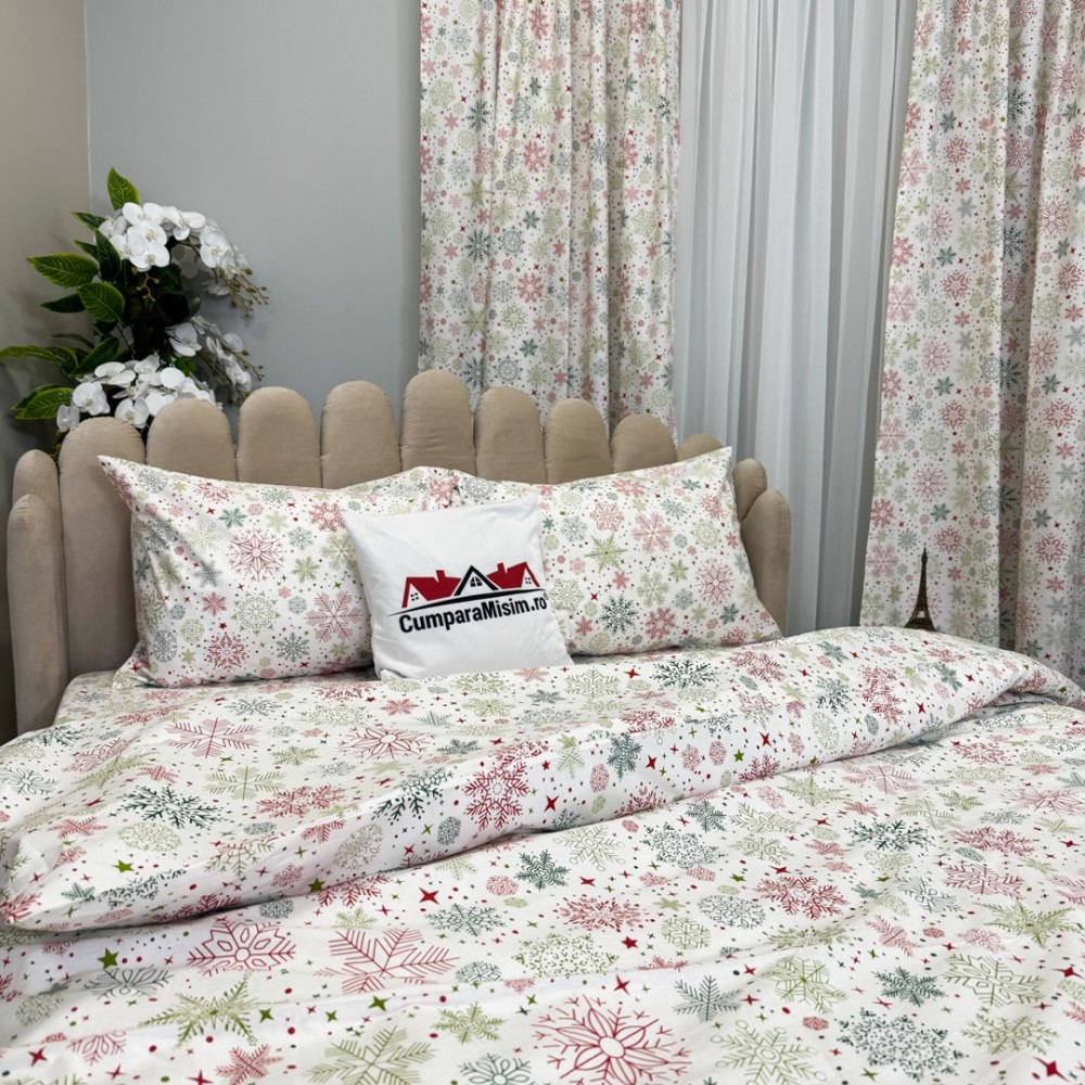Adaugă un strop de magie de Crăciun în dormitorul tău cu setul nostru exclusiv creat în atelierul nostru de croitorie, disponibil pe CumparaMisim.ro! Fiecare piesă este realizată cu grijă și atenție la detalii, pentru a aduce un decor festiv și o atmosferă caldă, primitoare. Setul cuprinde o lenjerie de pat din 4 piese și două draperii, toate confecționate din bumbac ranforsat de cea mai bună calitate.