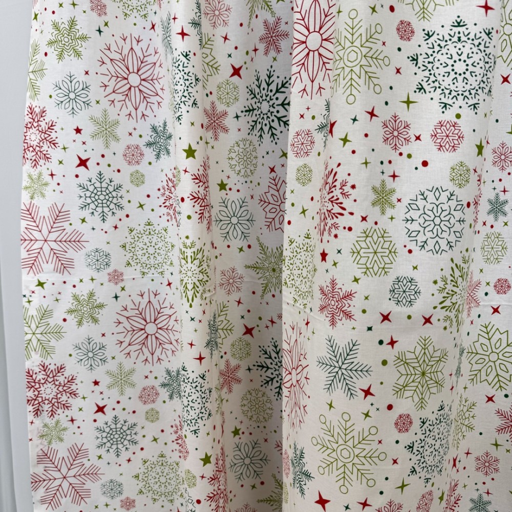 Două draperii 150 cm lățime x 235 cm înălțime – Draperiile sunt prevăzute cu rejansă pentru montare ușoară pe orice bară de draperii. Fabricate din același material de bumbac ranforsat, draperiile au o opacitate medie spre scăzută, ceea ce înseamnă că filtrează frumos lumina naturală, creând o atmosferă caldă și plăcută, fără a bloca complet lumina. Draperiile permit luminii să pătrundă și să ofere un efect de iluminare naturală difuză, perfectă pentru decorul de Crăciun și pentru orice alt sezon.