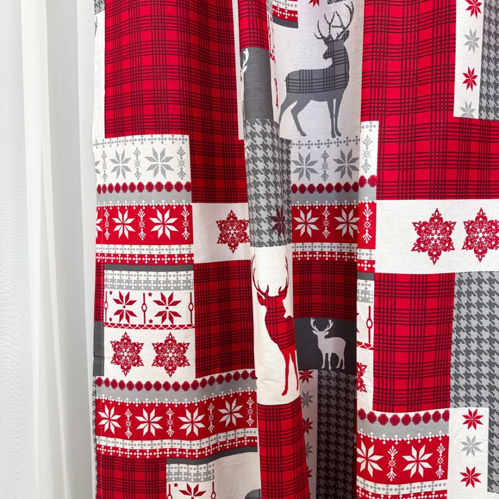 4. Două draperii 150 cm lățime x 235 cm înălțime – Draperiile sunt prevăzute cu rejansă pentru montare ușoară pe orice bară de draperii. Fabricate din același material de bumbac ranforsat, draperiile au o opacitate medie spre scăzută, ceea ce înseamnă că filtrează frumos lumina naturală, creând o atmosferă caldă și plăcută, fără a bloca complet lumina. Draperiile permit luminii să pătrundă și să ofere un efect de iluminare naturală difuză, perfectă pentru decorul de Crăciun și pentru orice alt sezon.
