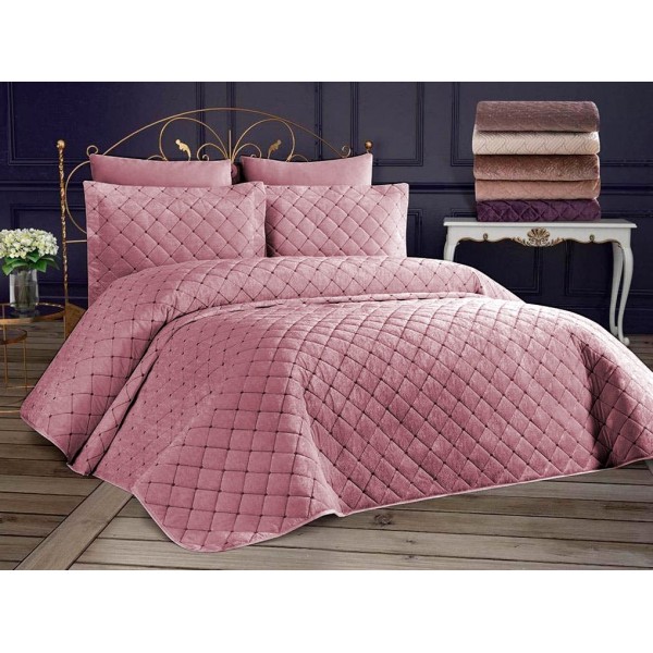 Set LUXURY 3 piese Cuvertura Brodata Catifea si 2 fete de perna CPS45, Casa Sabry
