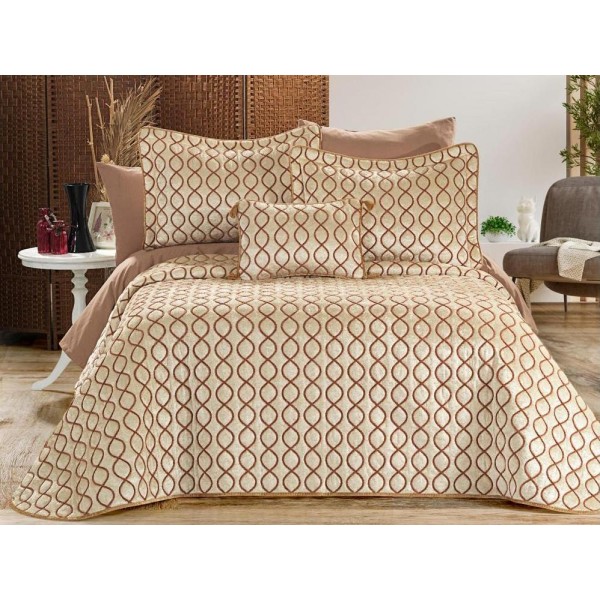 Cuvertura pufoasa cu model in relief, 2 fete de perna si 1 pernuta decor.