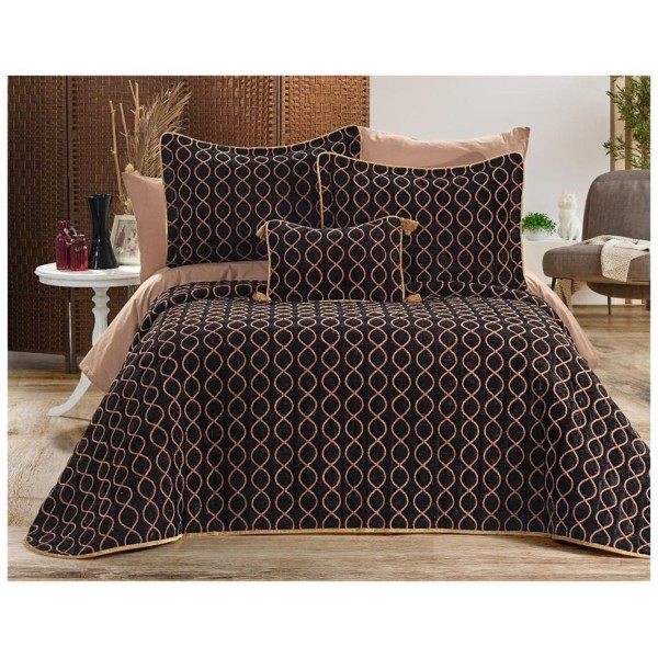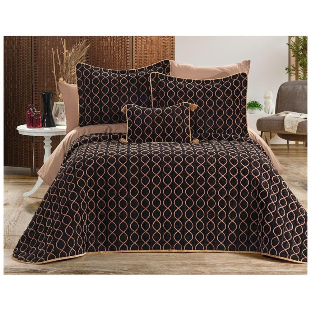 Set LUXURY 4 piese, Cuvertura Brodata Catifea, 2 fete de perna si o pernuta decor, BRILLANT Maro, Casa Sabry, cod produs: CPS138