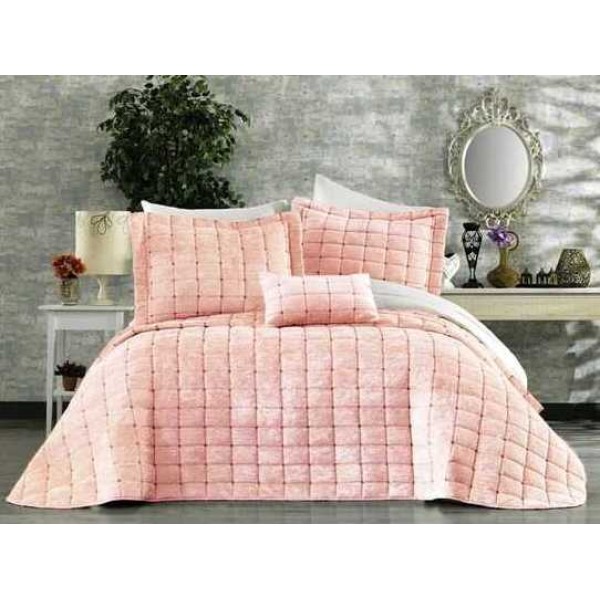 Set LUXURY 4 piese Cuvertura Brodata Catifea si 3 fete de perna CPS33, Casa Sabry