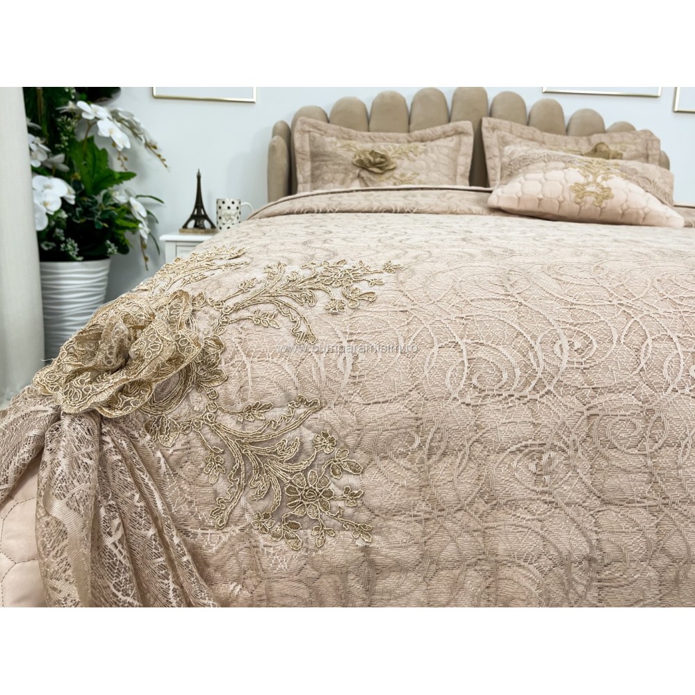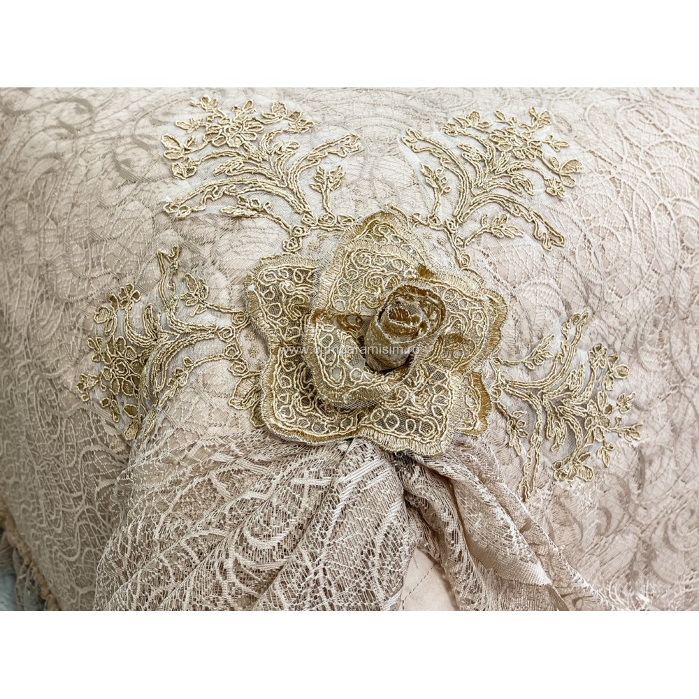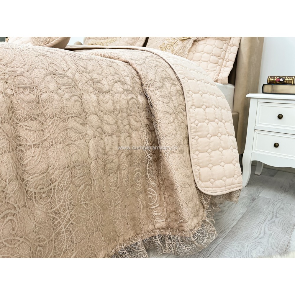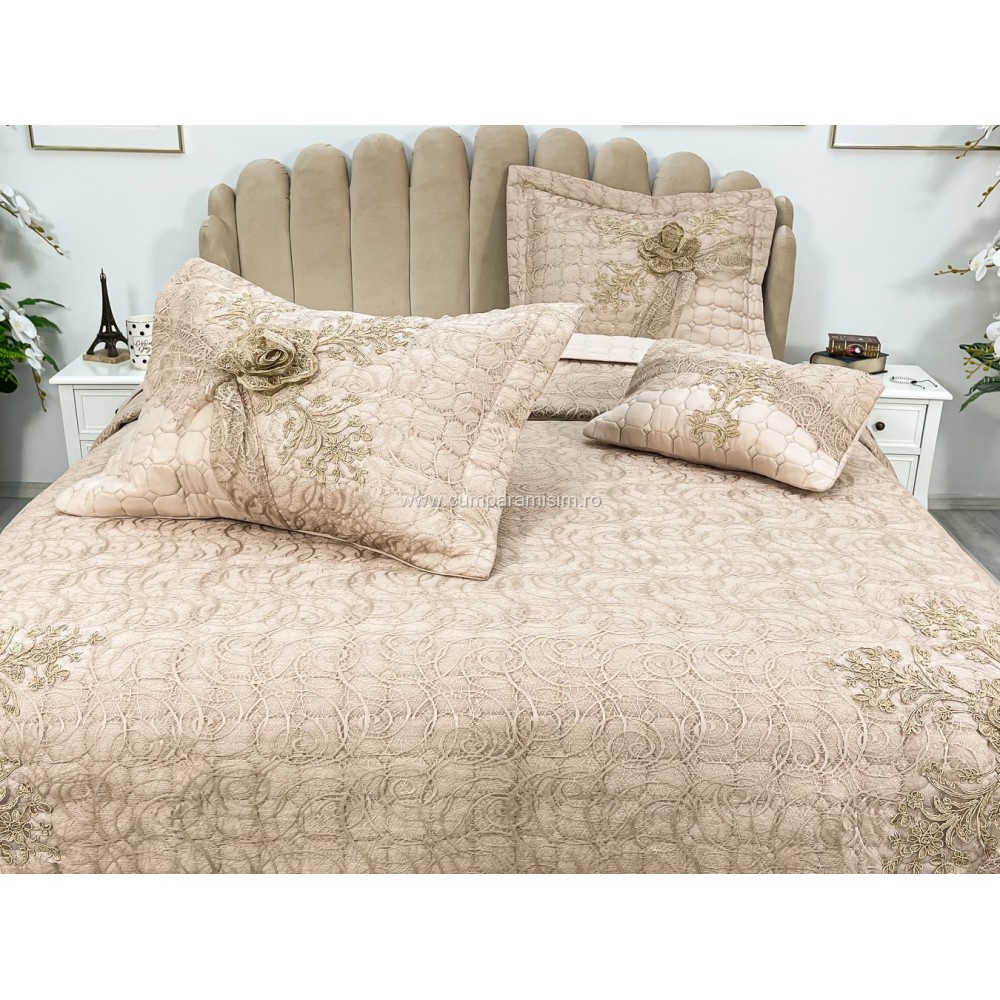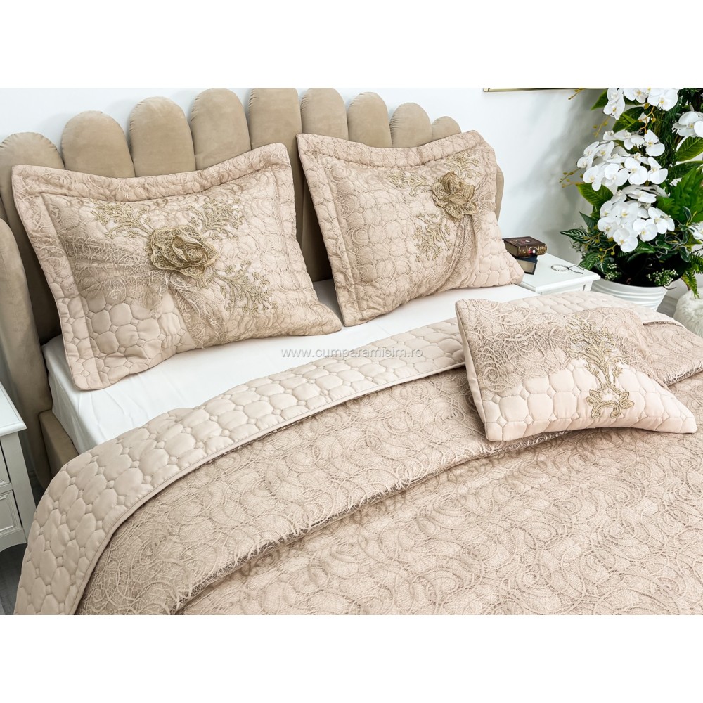 Set LUXURY 4 piese Cuvertura bumbac cu dantela si 3 fete de perna, Goncagul Capuccino, Casa Sabry, cod produs: CPS12
