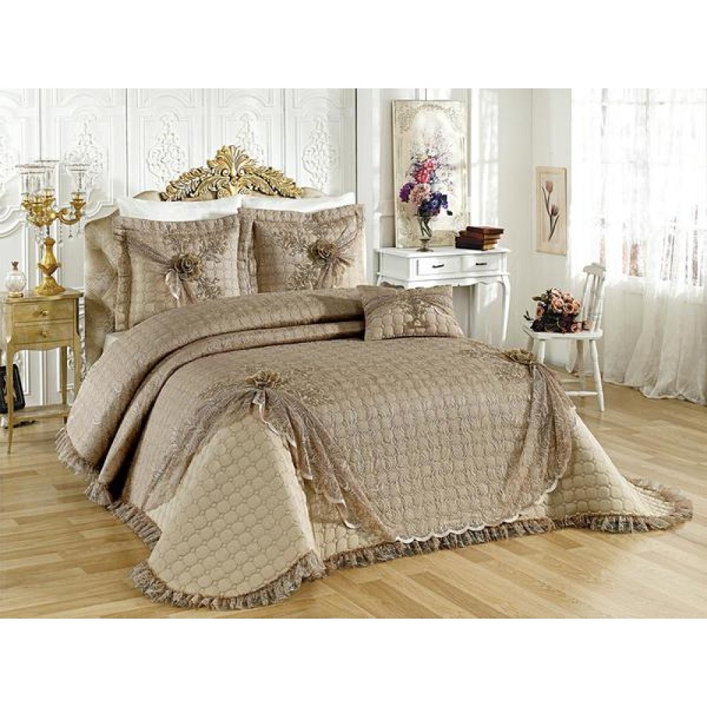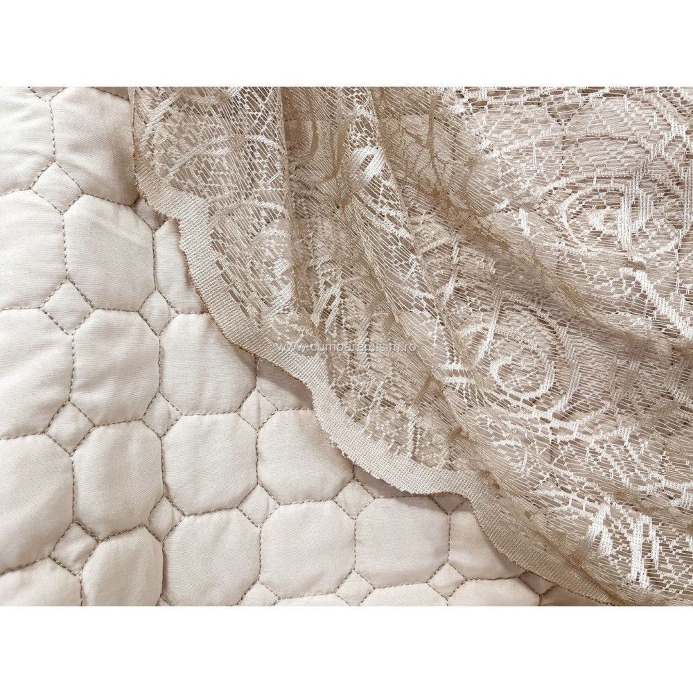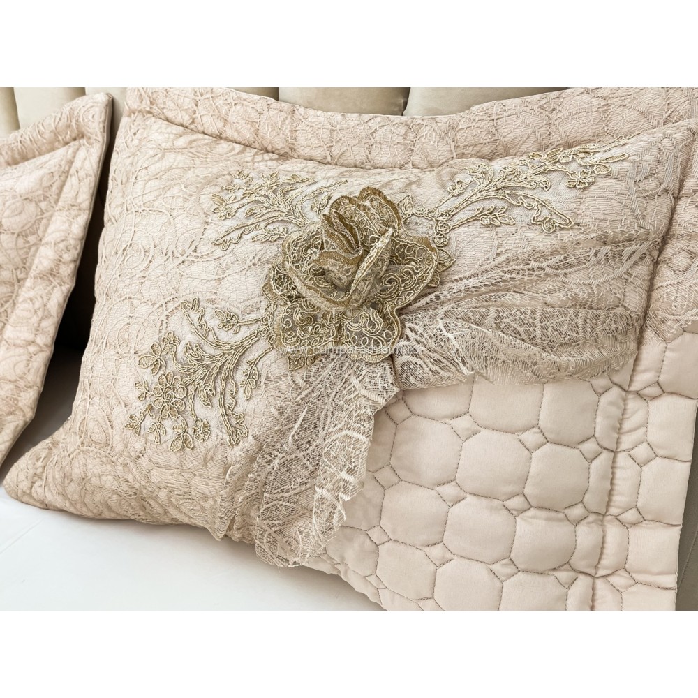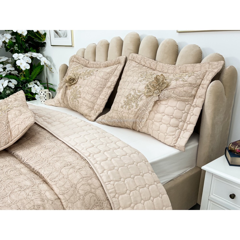 Set LUXURY 4 piese Cuvertura bumbac cu dantela si 3 fete de perna, Goncagul Capuccino, Casa Sabry, cod produs: CPS12