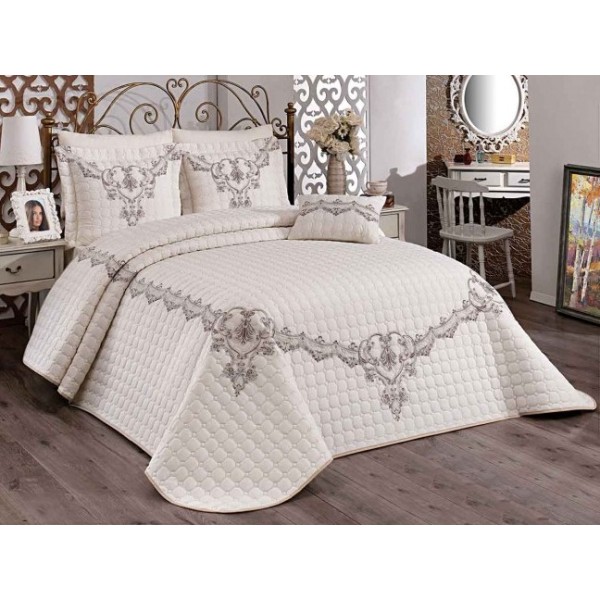 Set LUXURY 4 piese Cuvertura bumbac cu dantela si 3 fete de perna, TAC Crem, Casa Sabry, cod produs: CPS15