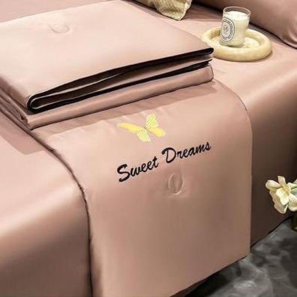 Recomandam cu incredere aceasta lenjerie pentru pat dublu cu 4 piese, confectionata din matase, ce cu siguranta va asigura esteticul perfect pentru dormitorul tau, prin design-ul modern si culorile rafinate.