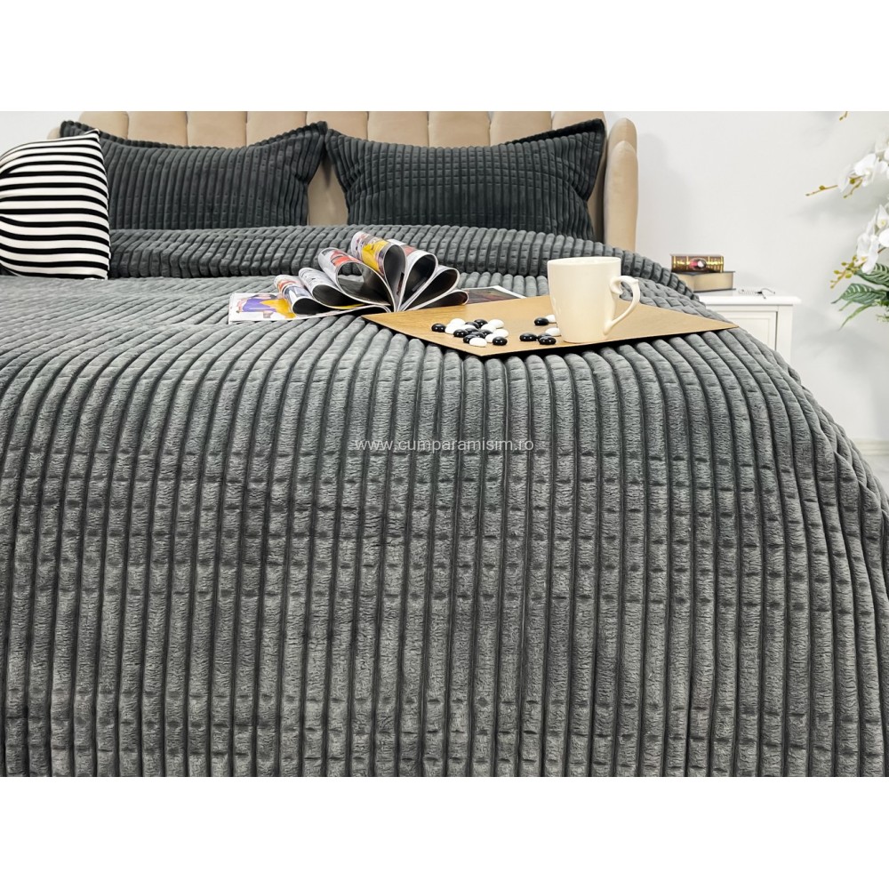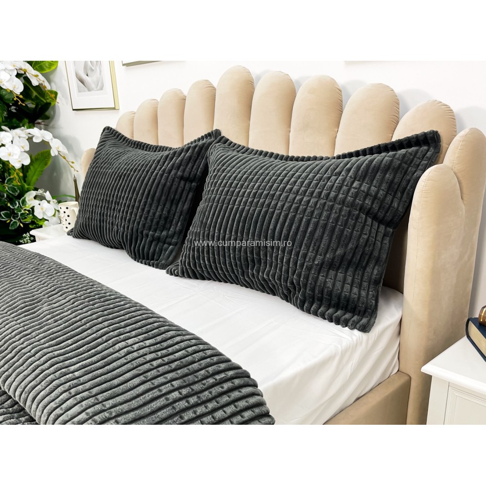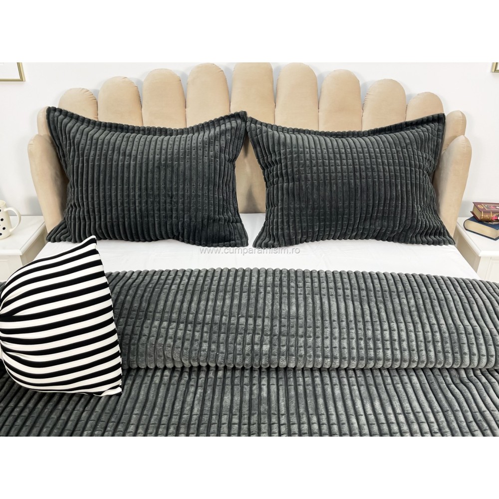 Set Patura groasa MERINOS tip cuvertura cu 2 fete de perna 50x70cm, Gri Petrol, Casa Sabry, cod produs: CPS122
