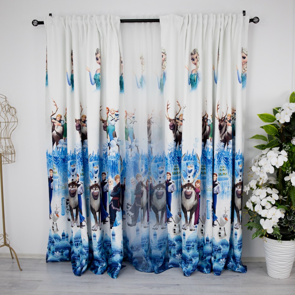 Set Perdea din Voal 3m latime x 2m inaltime si 2 bucati Draperie Satinata 1.5m latime x 2m inaltime, pentru copii , Frozen, cu rejansa pentru sina, CumparaMisim, cod produs: BPD9-BDRs9A