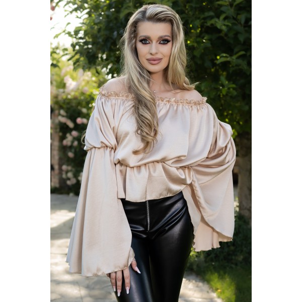 Bluza tip top, cu maneci largi din triplu voal, netransparent.