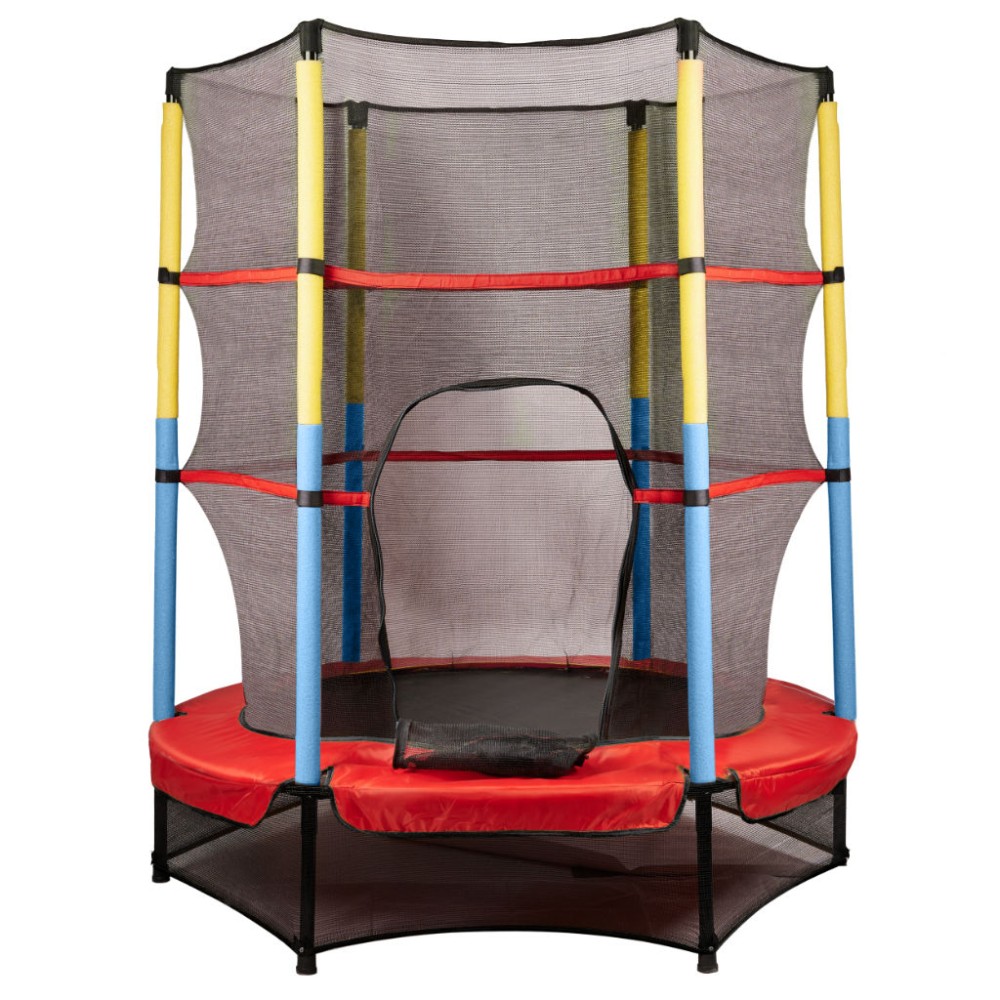 Trambulina de gradina, pentru copii, 140 cm, 55 inch, usor de instalat si utilizat, sarcina maxima 150 kg, rosu si albastru