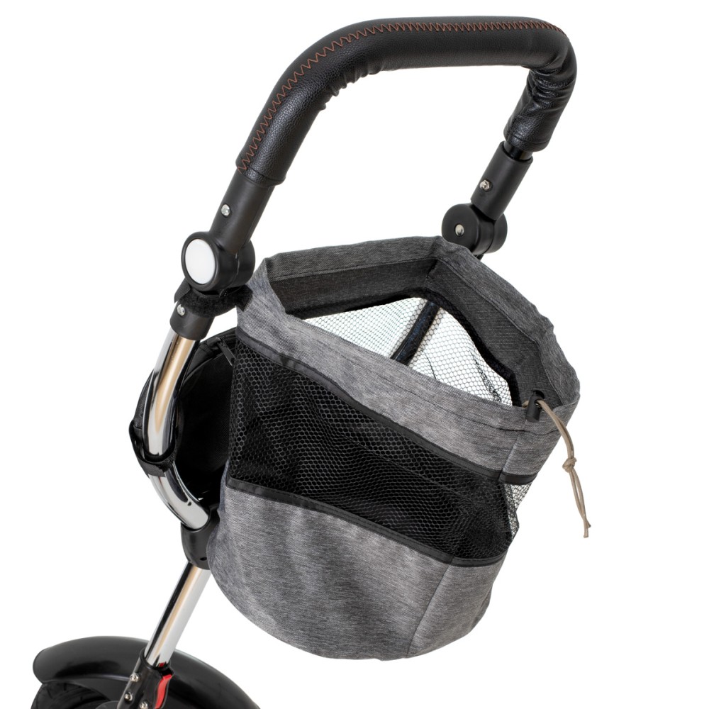 Atât balustrada, cât și husa scaunului cu curele și ghidajul pentru părinte pot fi îndepărtate, adaptând astfel bicicleta la nevoile unui copil în creștere.