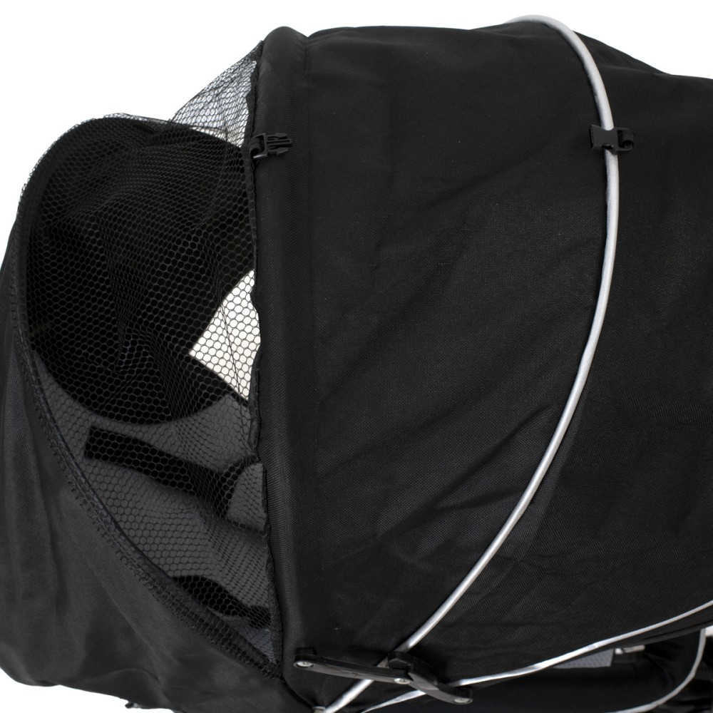 Bicicleta are un baldachin practic pentru a-l proteja pe cel mic de ploaie și de soare.